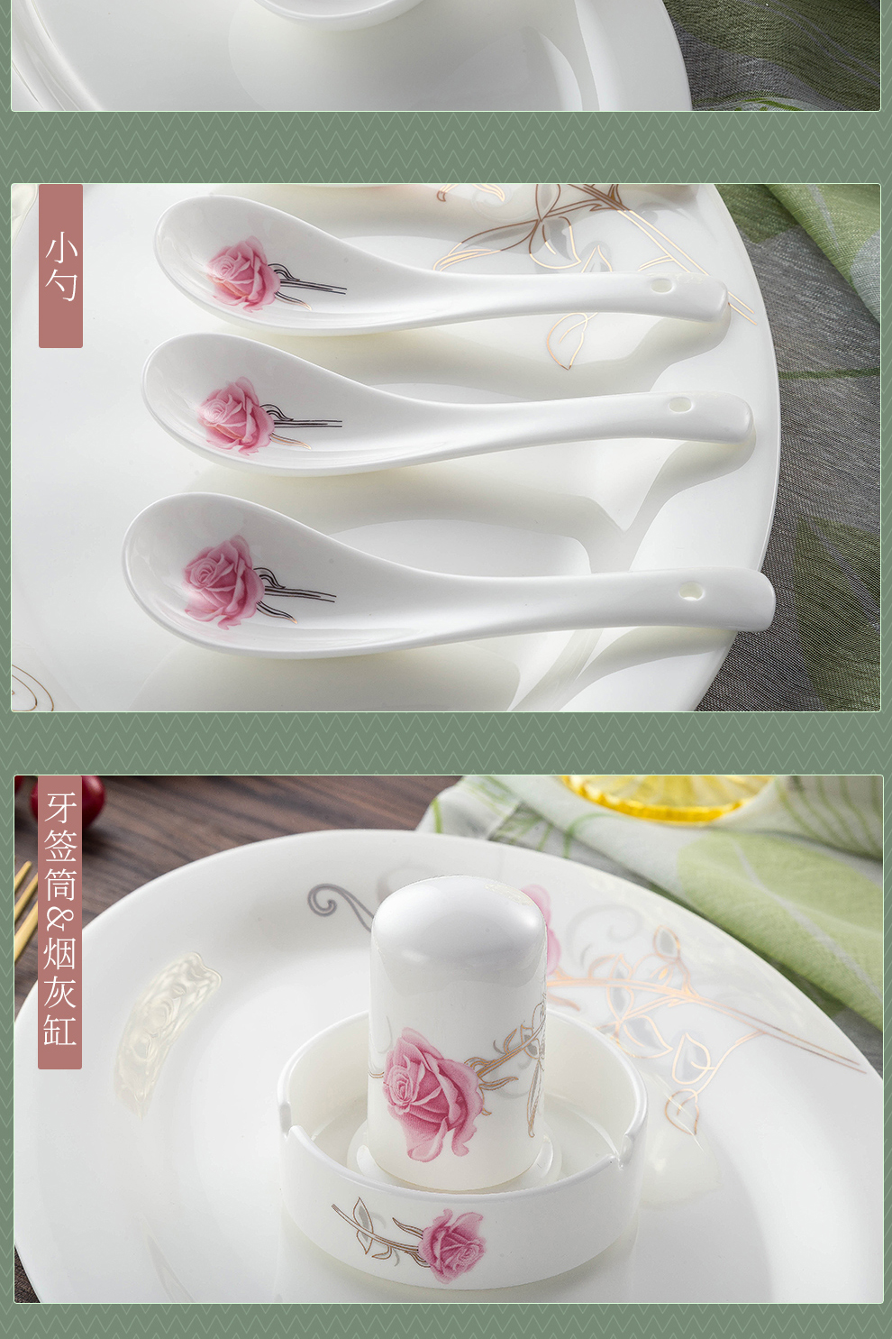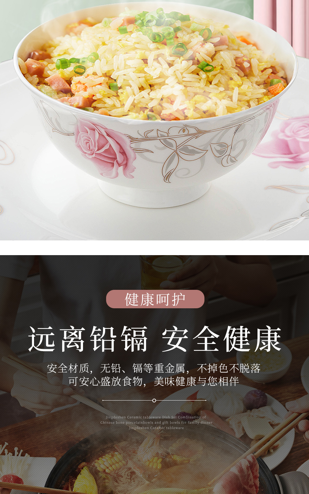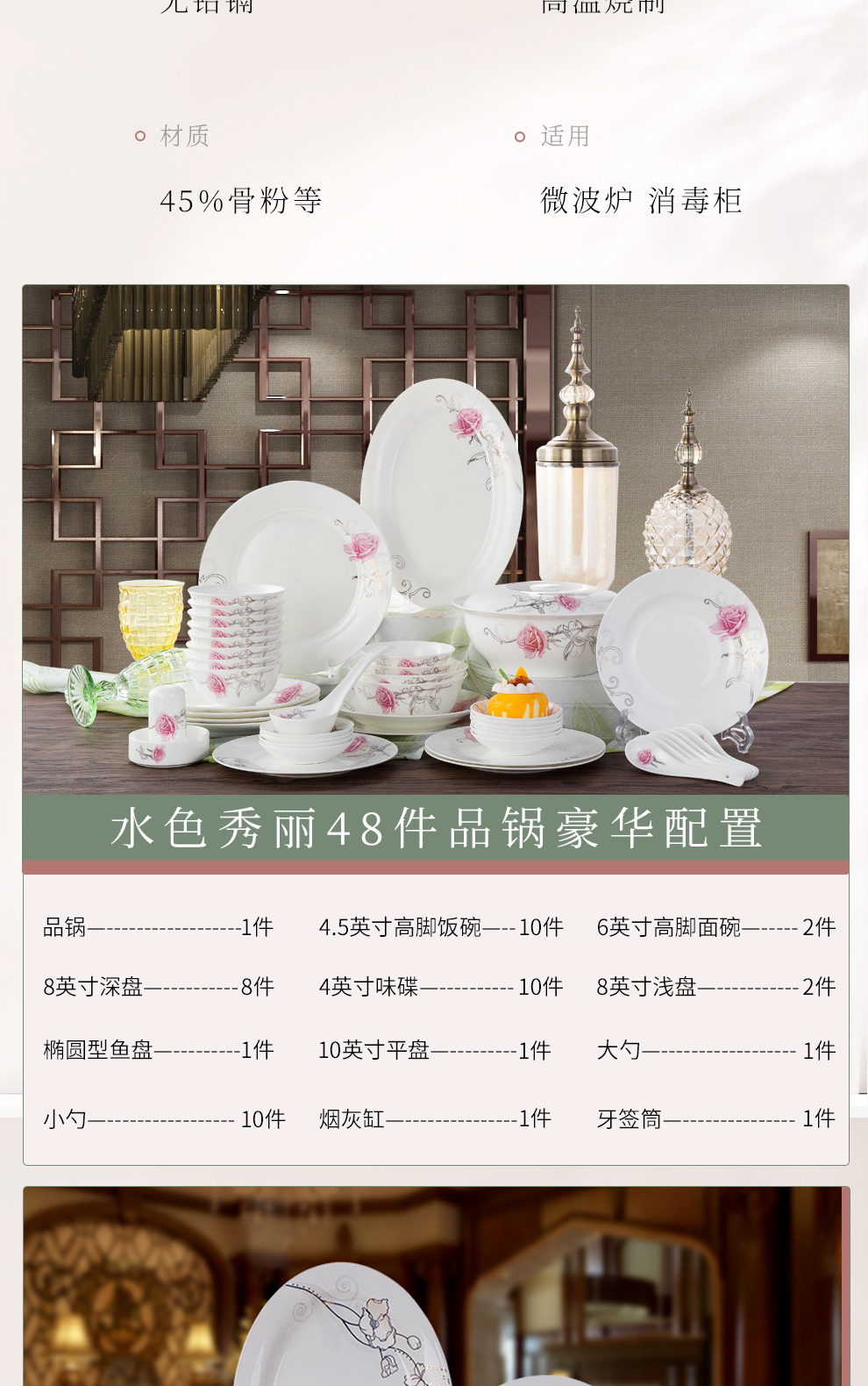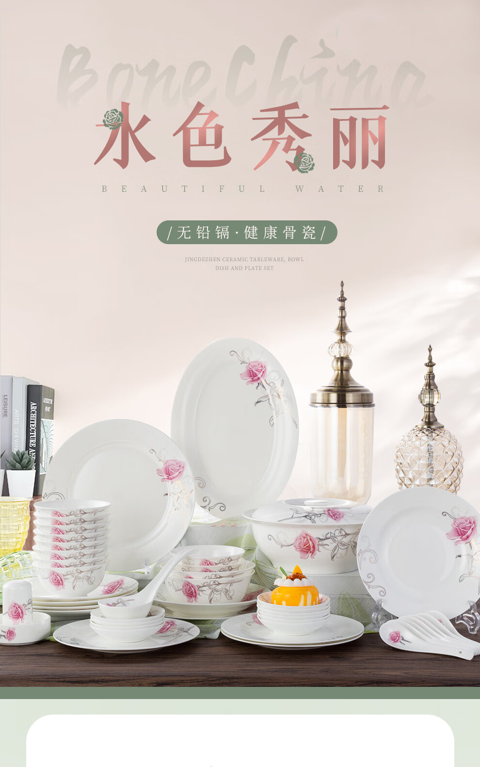 Houxiutang tableware set, bowls and plates, bone china set, Jingdezhen ceramic dish set, home use, beautiful water color, 48 pieces