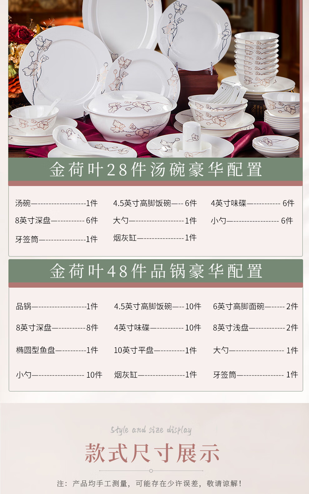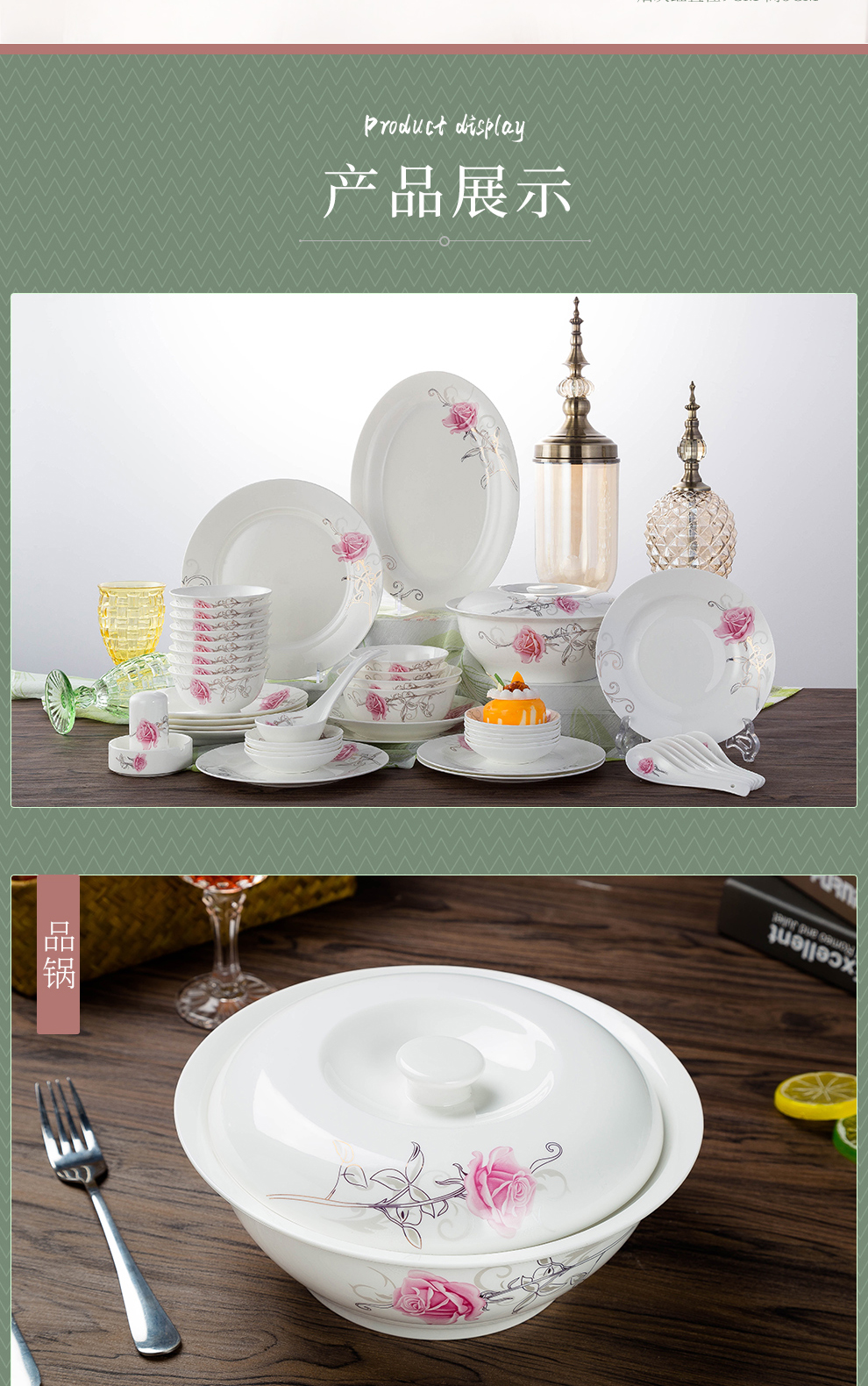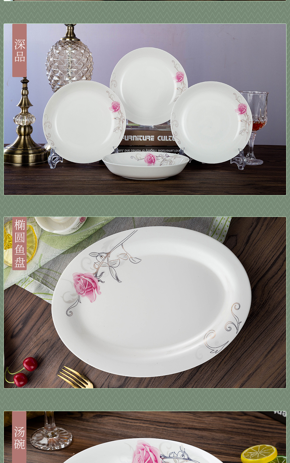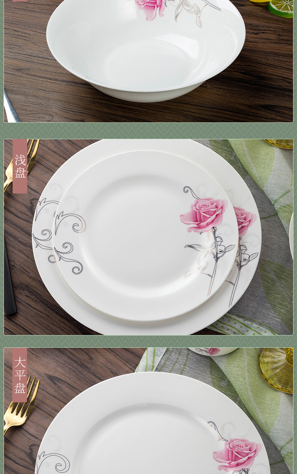 Houxiutang tableware set, bowls and plates, bone china set, Jingdezhen ceramic dish set, home use, beautiful water color, 48 pieces