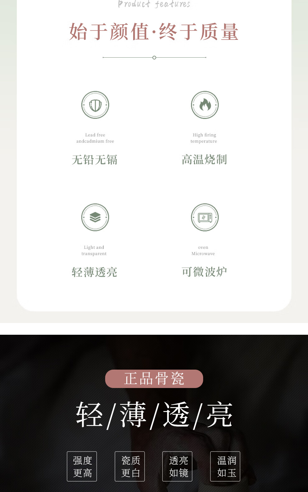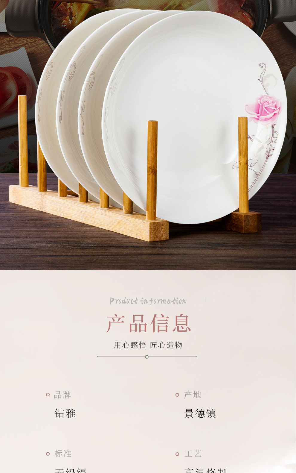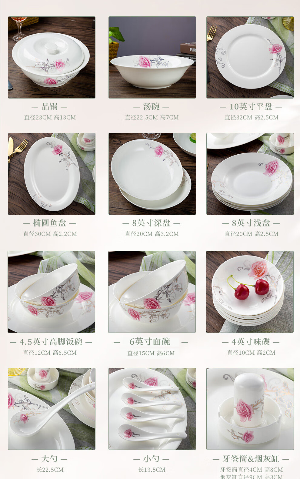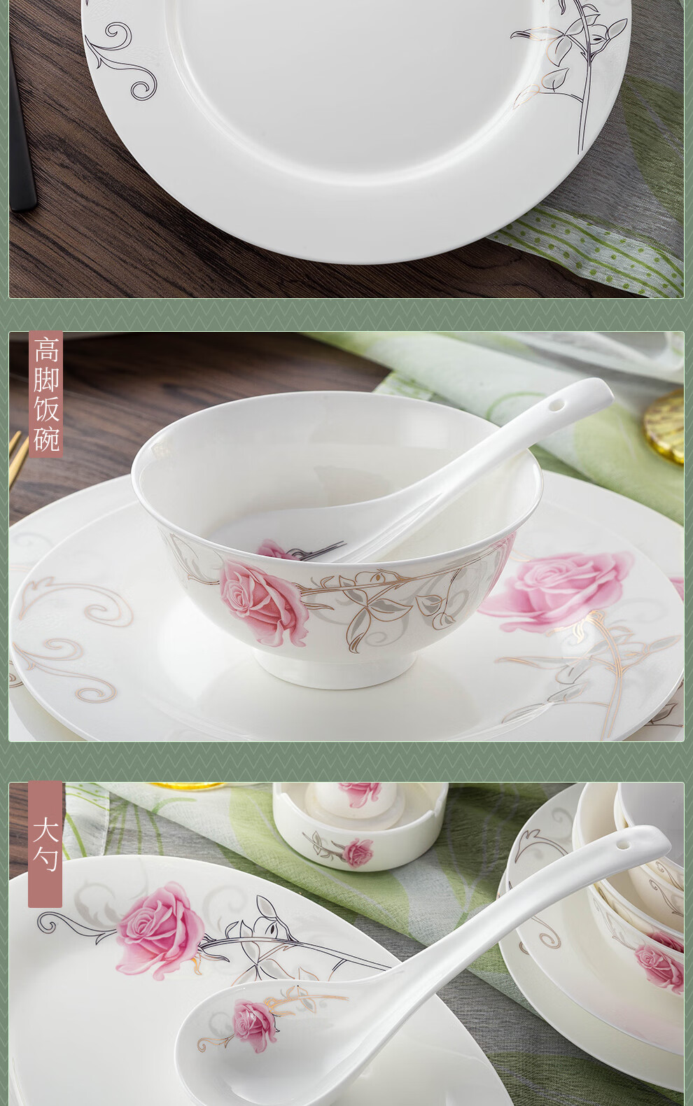 Houxiutang tableware set, bowls and plates, bone china set, Jingdezhen ceramic dish set, home use, beautiful water color, 48 pieces