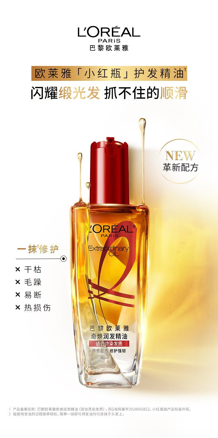 L'Oreal Qihuan Hair Care Essential Oil 100ml (small red bottle, no-wash, strong, damage-proof, repair and strong)