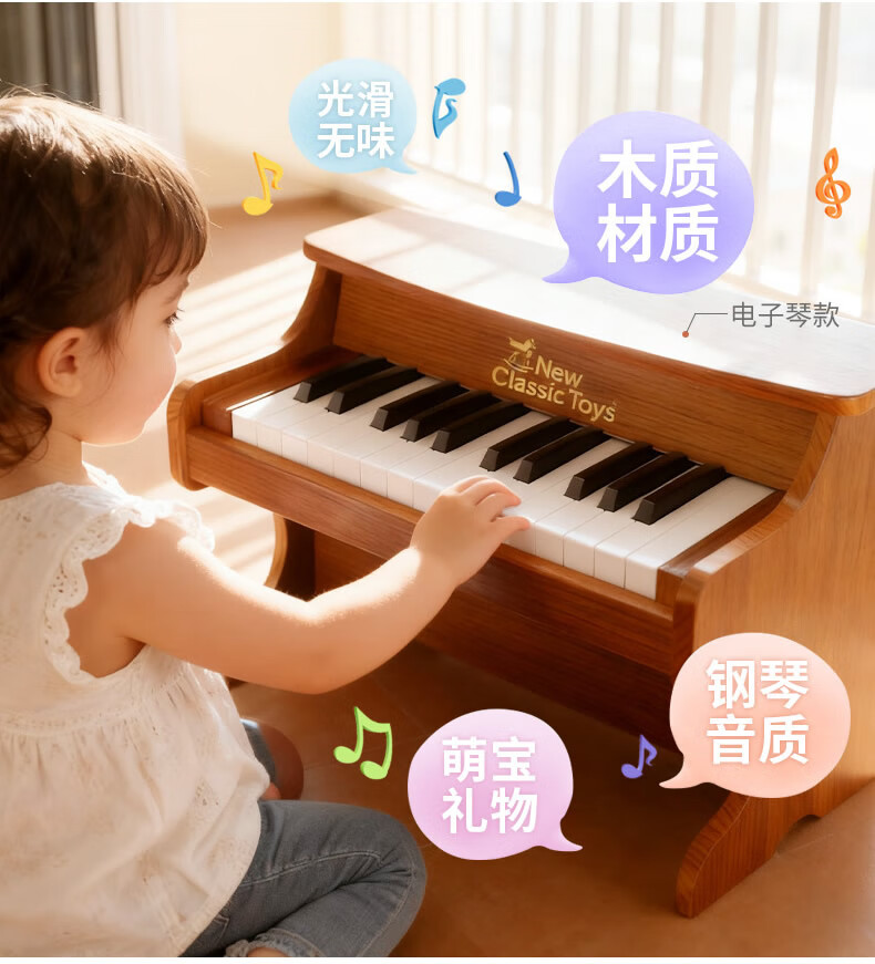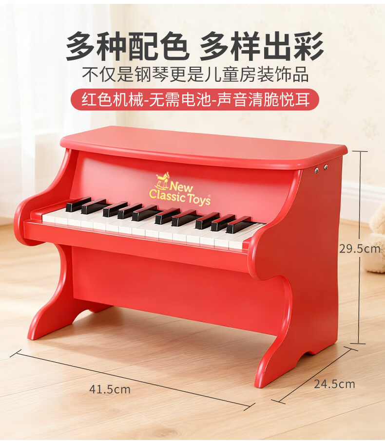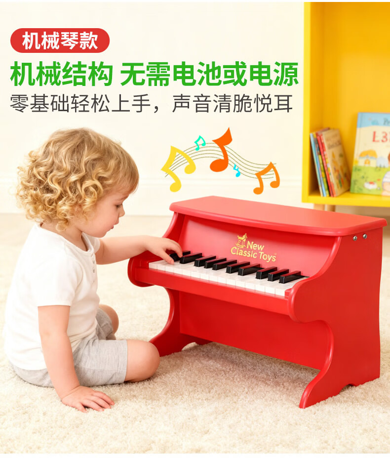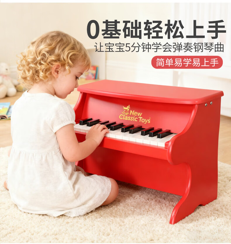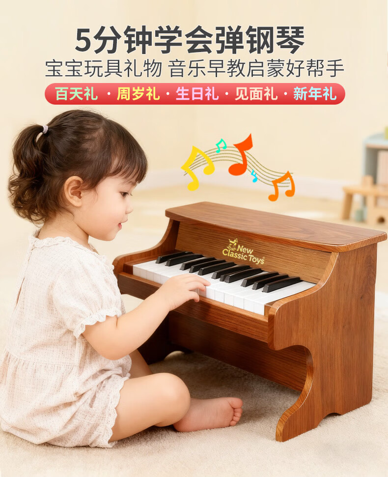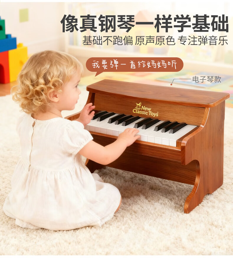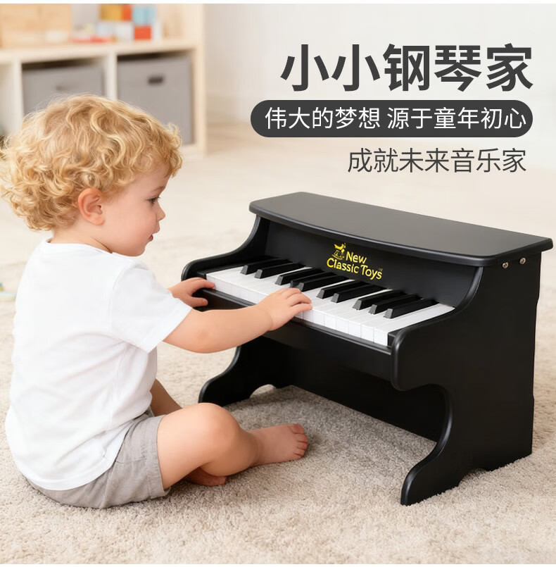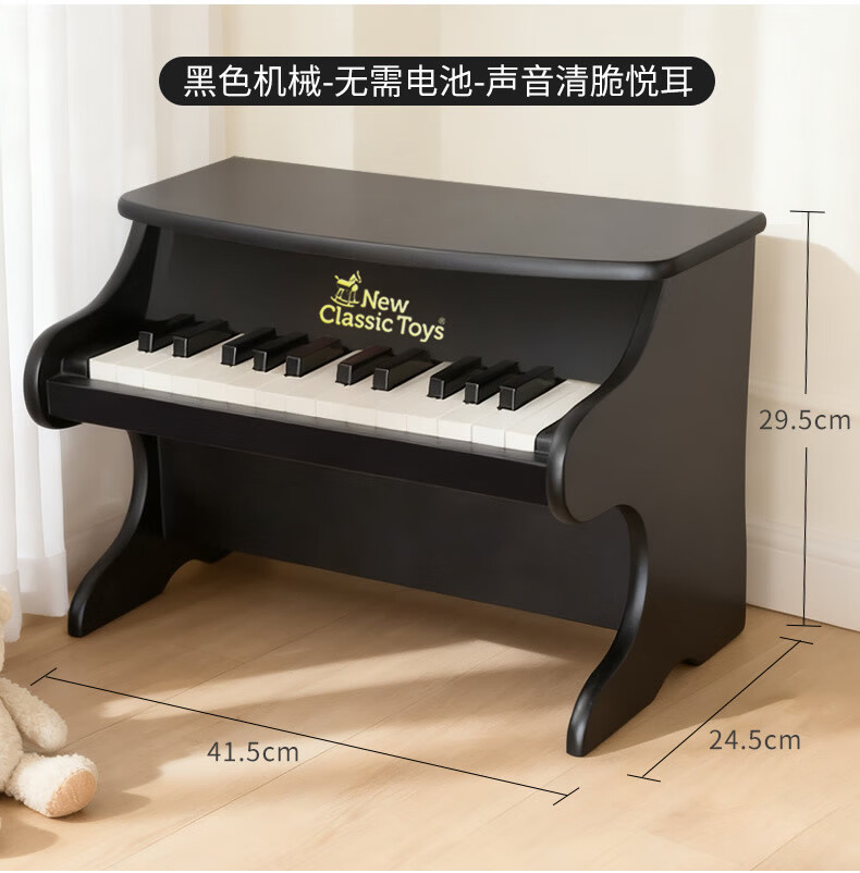 NEW CLASSIC TOYS children's piano toy wooden electronic keyboard for boys and girls music early education one-year-old baby baby birthday first-year gift 25-key black classic children's wooden mechanical piano Dutch brand small piano educational toy 1-3-6 years old Spring Festival New Year gift