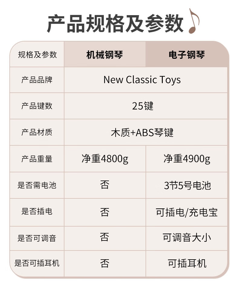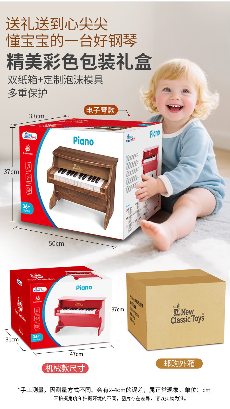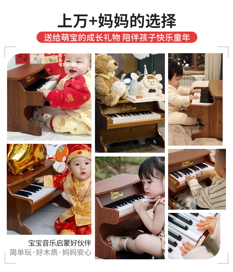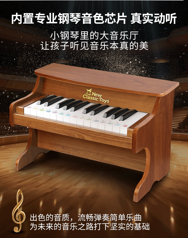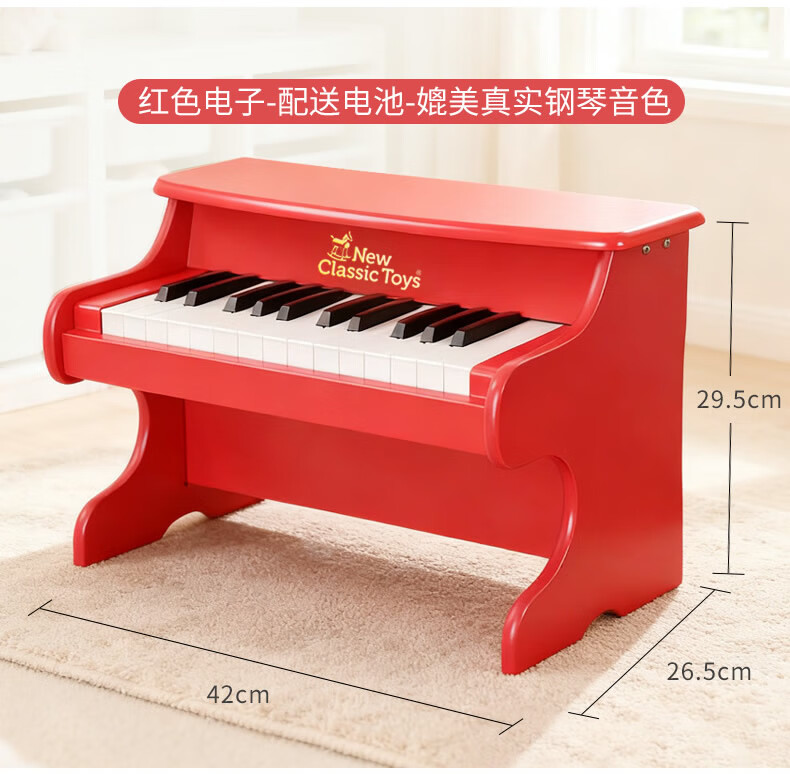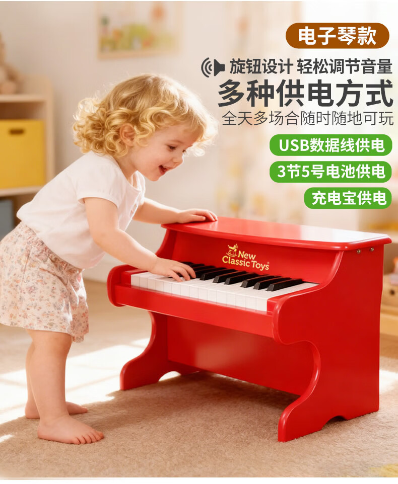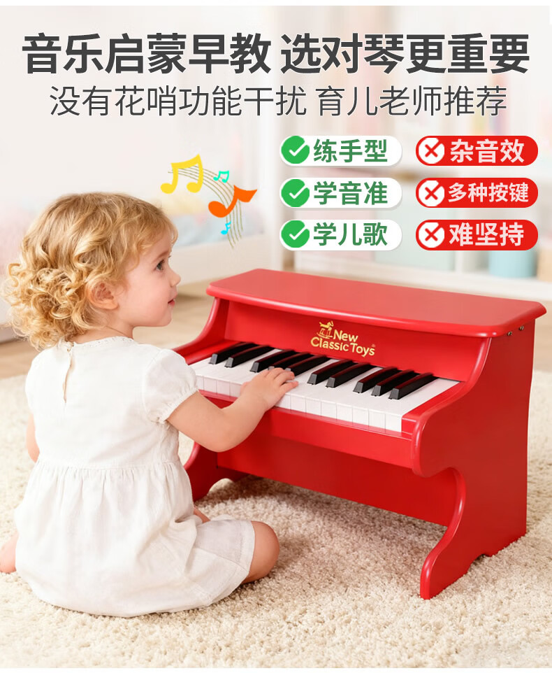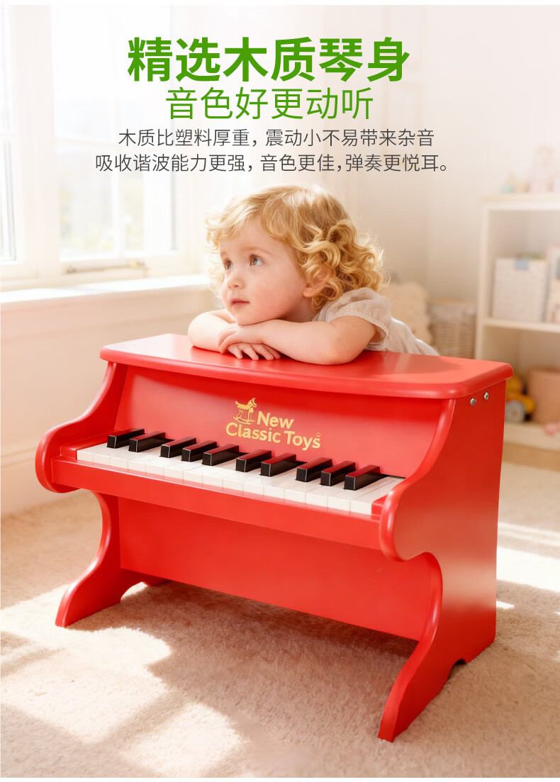 NEW CLASSIC TOYS children's piano toy wooden electronic keyboard for boys and girls music early education one-year-old baby baby birthday first-year gift 25-key black classic children's wooden mechanical piano Dutch brand small piano educational toy 1-3-6 years old Spring Festival New Year gift