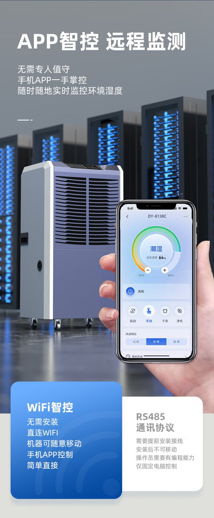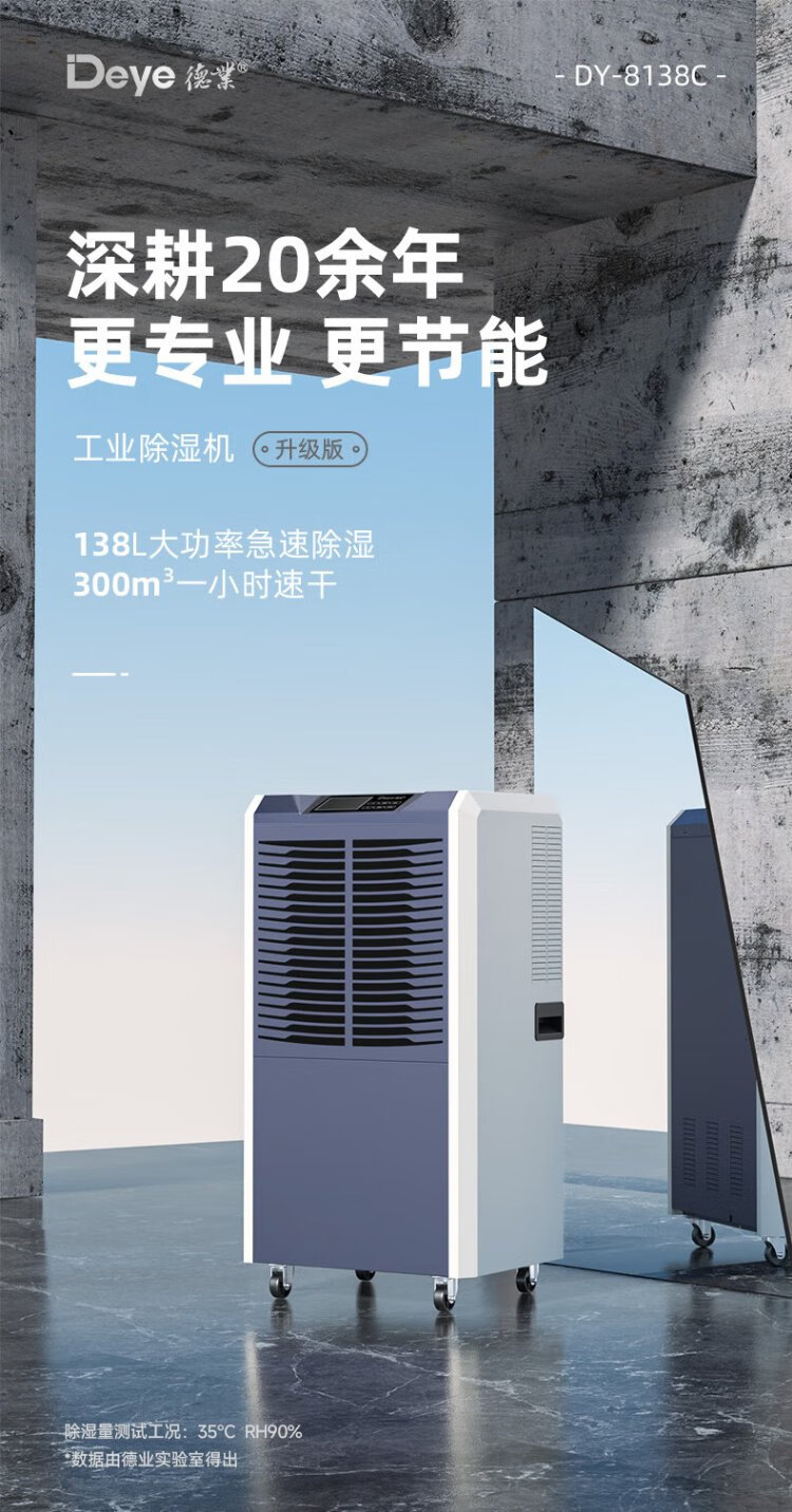 Deye industrial dehumidifier/dehumidifier 138L/day 40-300 square meters villa basement home warehouse large high-power dehumidifier DY-8138C 138L/day