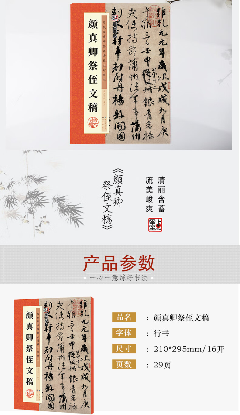 Ink dot copybook, Yan Zhenqing's memorial manuscript for his nephew, running script calligraphy copybook, high-definition enlarged comparison copy of classic inscriptions from past dynasties, with simplified Chinese marginalia