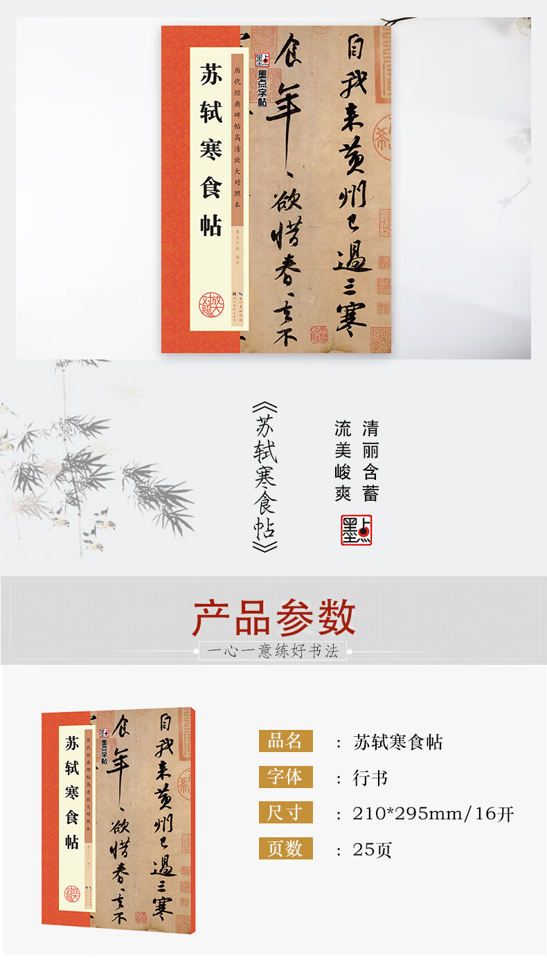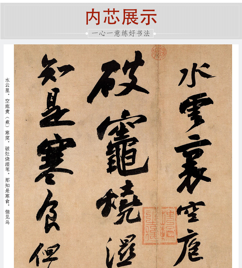 Ink dot calligraphy, Su Shi's cold food calligraphy, an introduction to brush calligraphy, copying examples of Su Shi's cold food calligraphy, past dynasties' calligraphy, enlarged and comparative copies with simplified marginalia and traditional cursive calligraphy