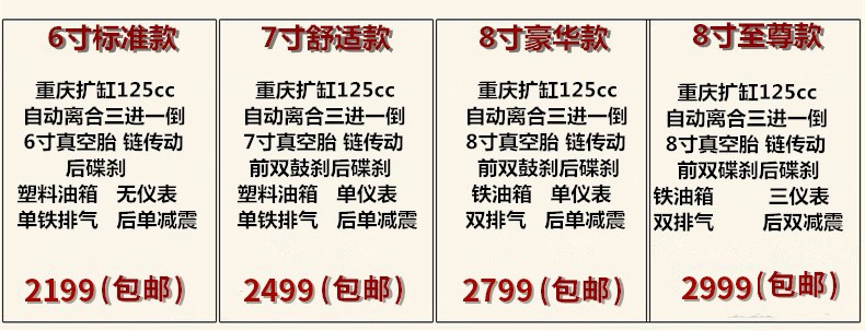 ATV four-wheel off-road motorcycle all-terrain vehicle ATV mountain bike adult gasoline 125cc differential shaft drive 8-inch small Mars road vacuum tire 6-inch chain transmission standard model