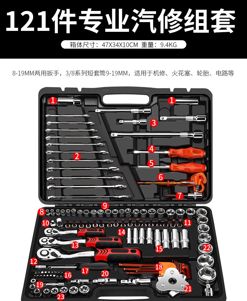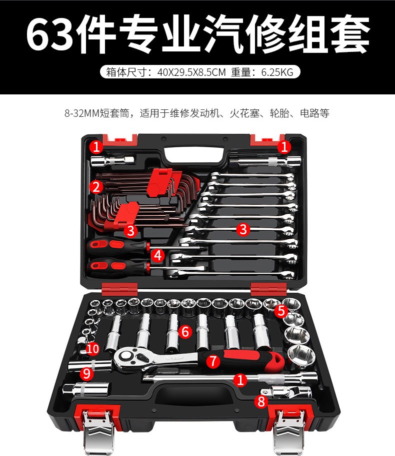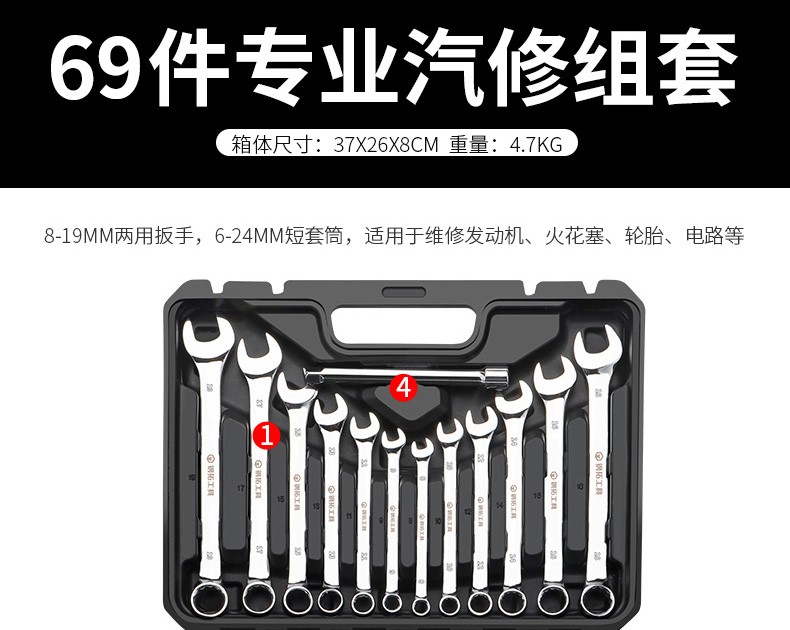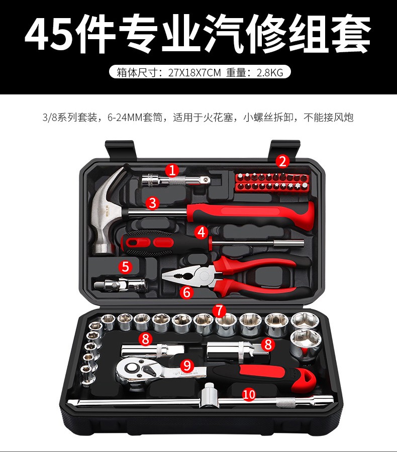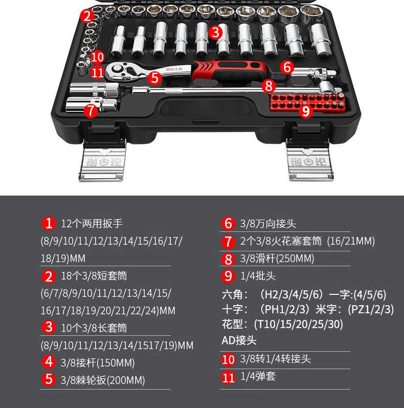 Gangtuo Auto Repair Tool Set Ratchet Socket Wrench Set Professional Auto Repair Tools Hardware Repair Tool Box 69 Piece Set 3/8 Medium Flying Short 6-24 Long 8-21