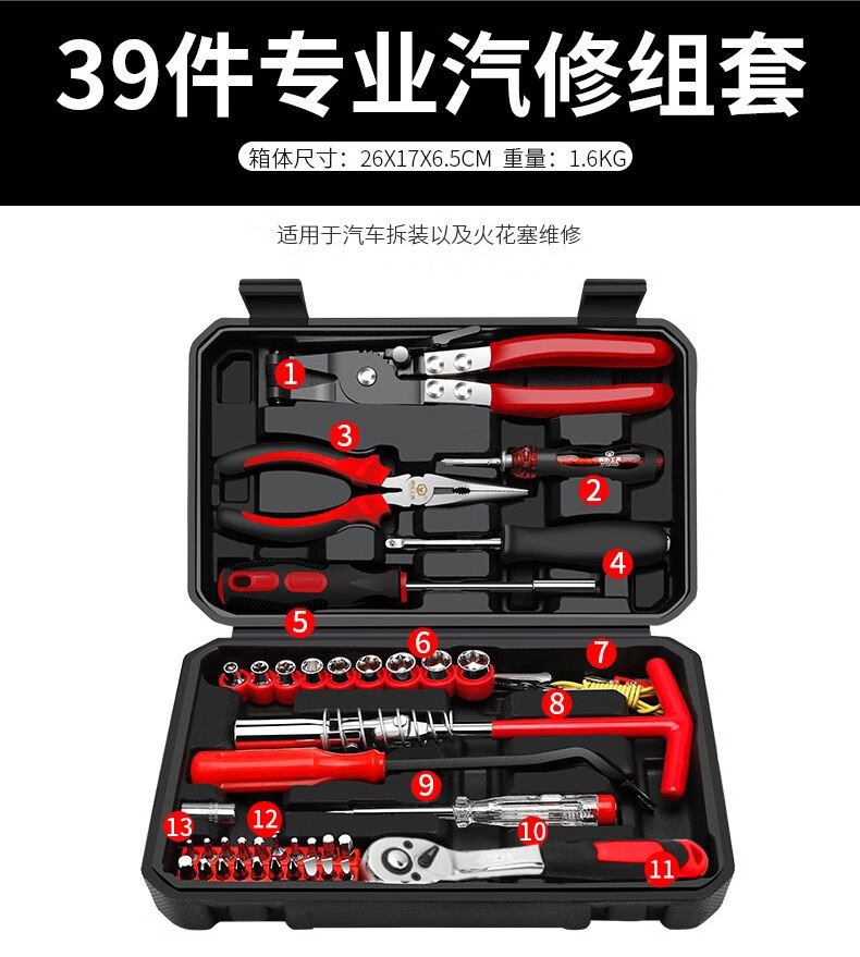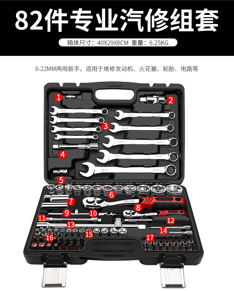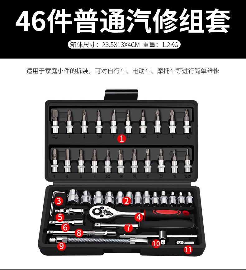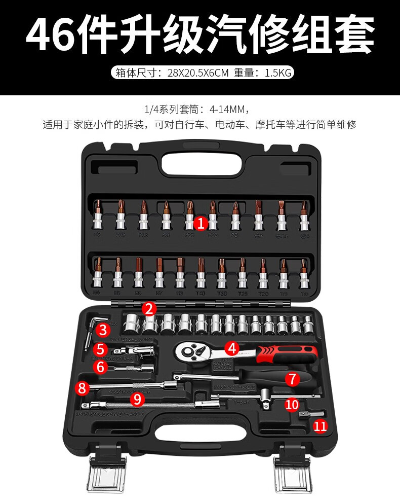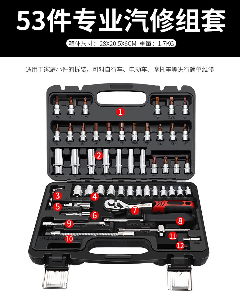 Gangtuo Auto Repair Tool Set Ratchet Socket Wrench Set Professional Auto Repair Tools Hardware Repair Tool Box 69 Piece Set 3/8 Medium Flying Short 6-24 Long 8-21
