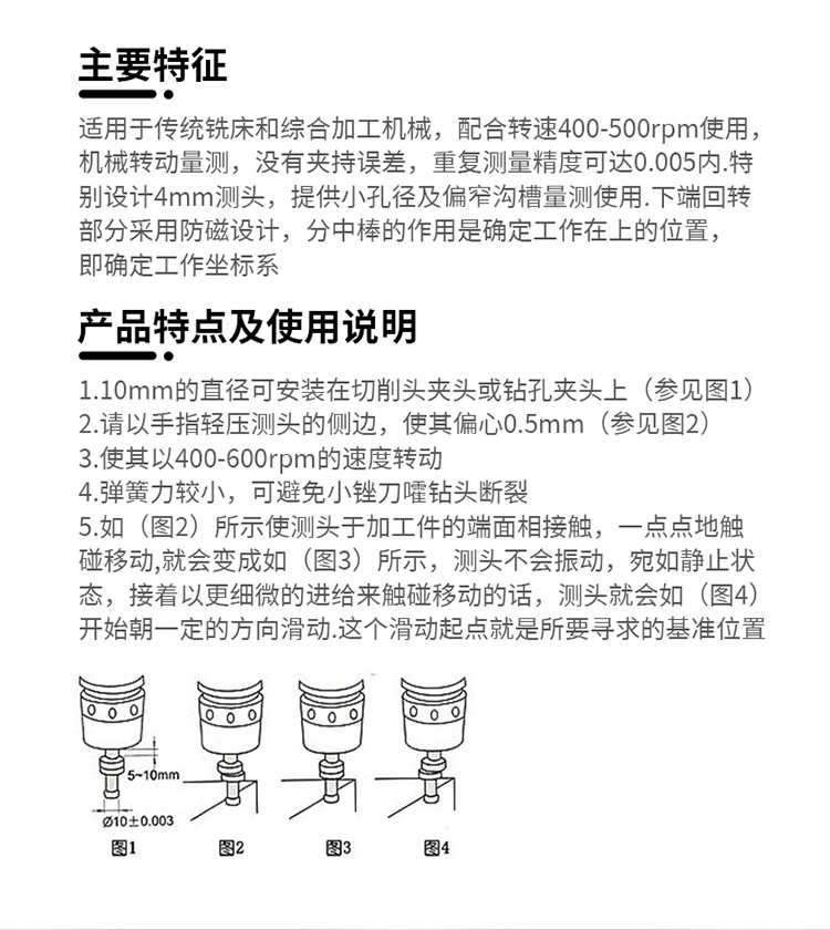 Non-magnetic centering rod edge finder, ceramic high-precision tool setter, CNC milling machine, CNC machining center minute rod, high-quality non-magnetic centering rod + spring