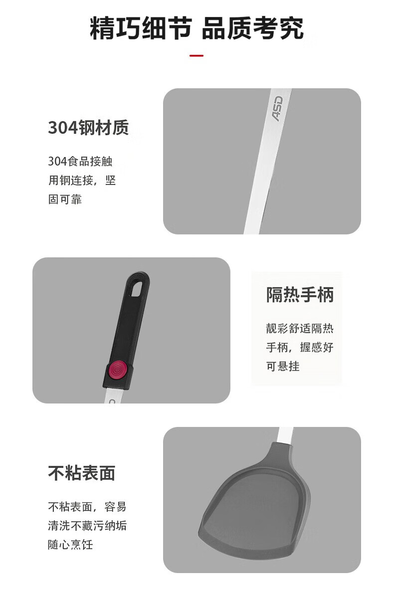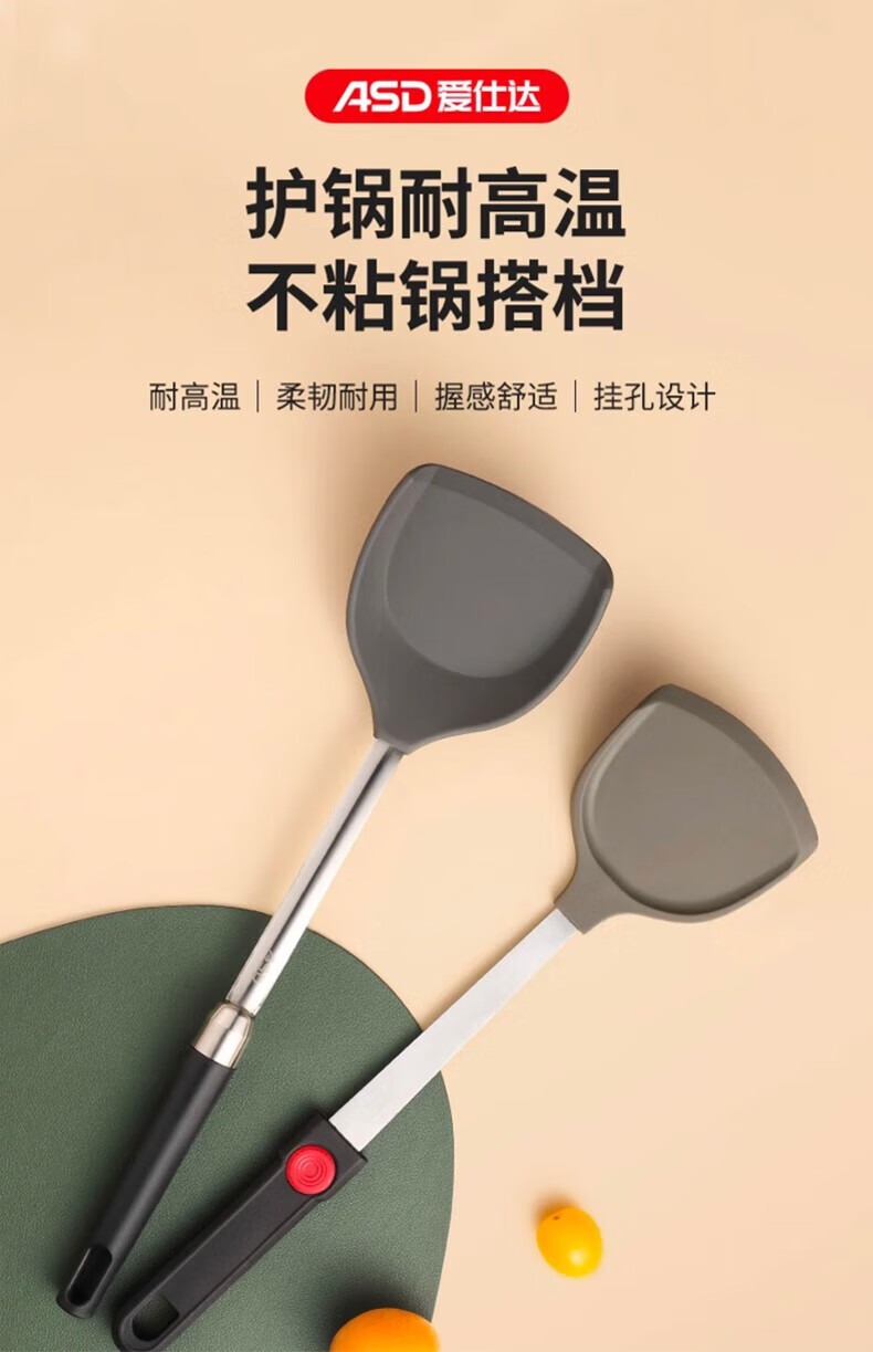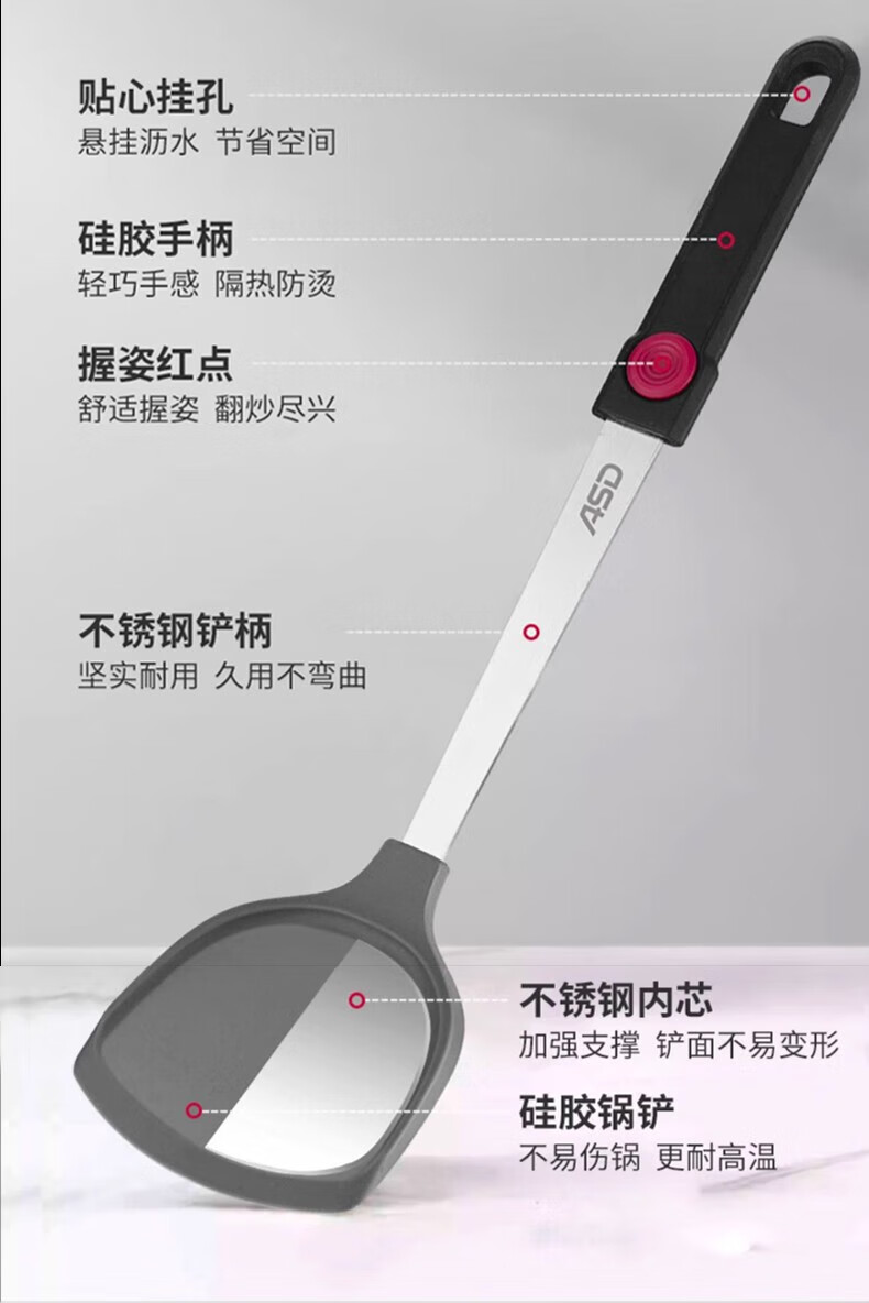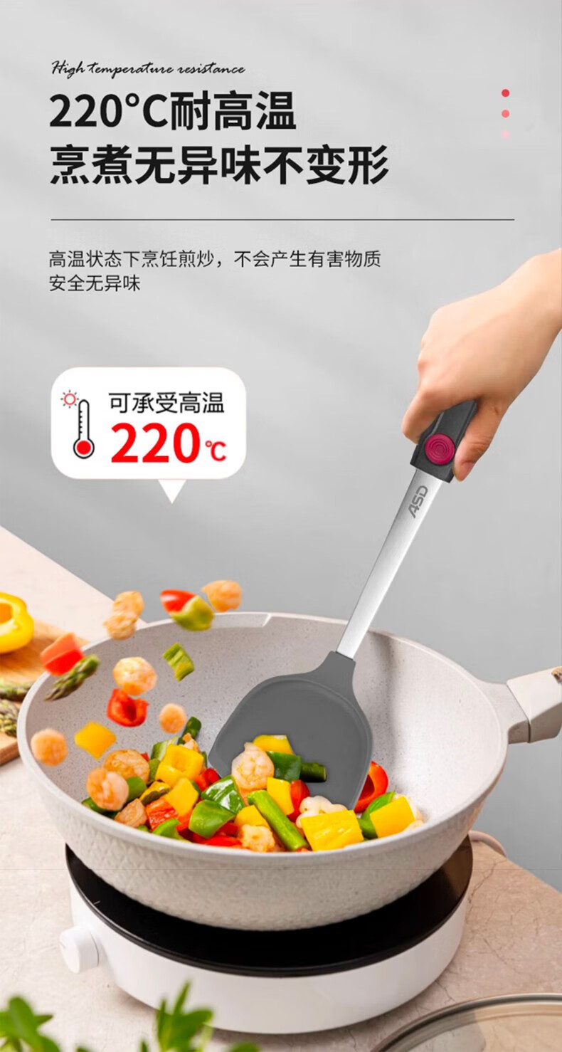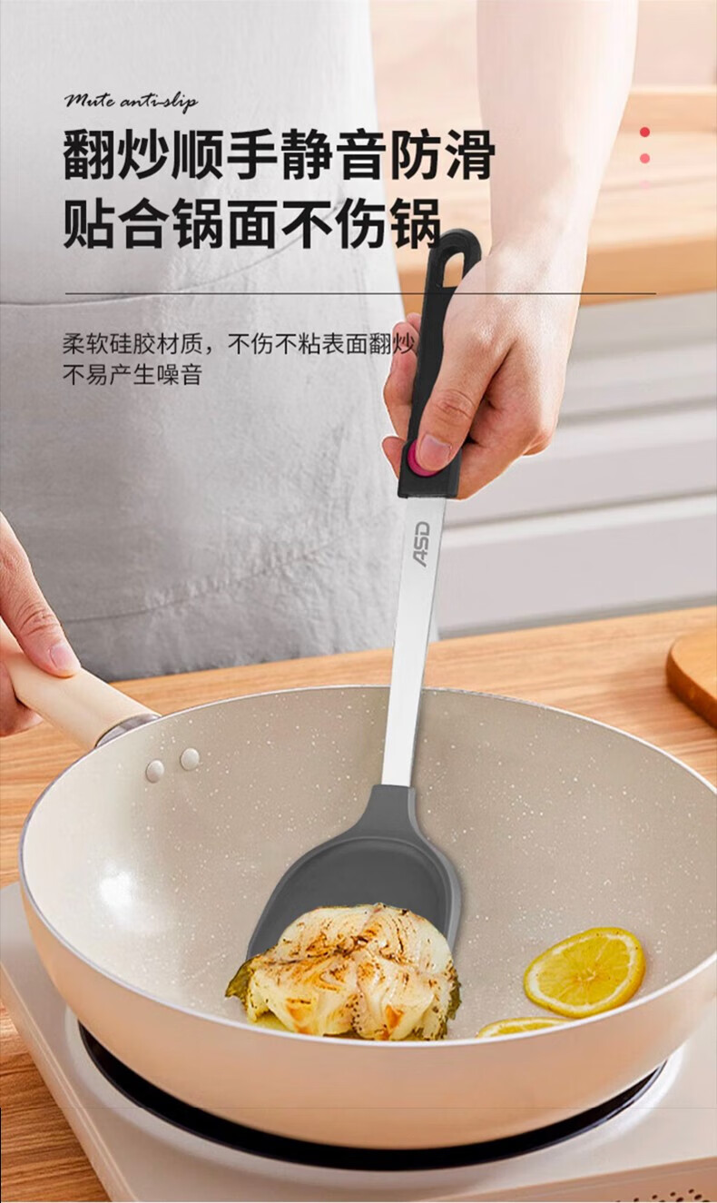 ASD silicone pot spatula, cooking spatula, smokeless non-stick special frying pan, high temperature resistance, classic single spatula