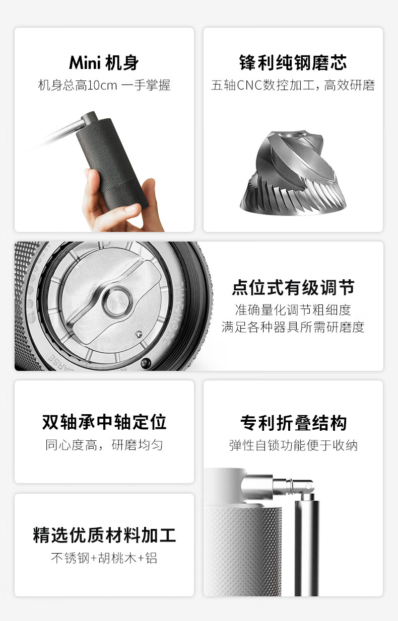 Taimo Nano Mini Portable Coffee Machine Manual Bean Grinder Foldable Coffee Bean Grinder Nano Black Diamond Pattern (Single Product Grinding Core)