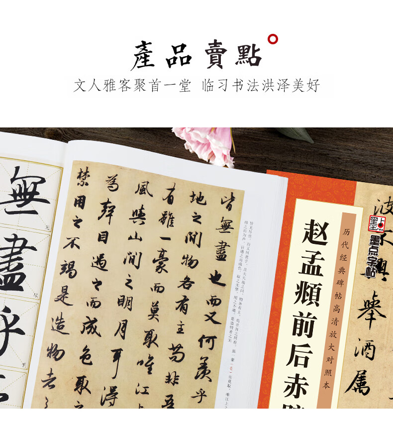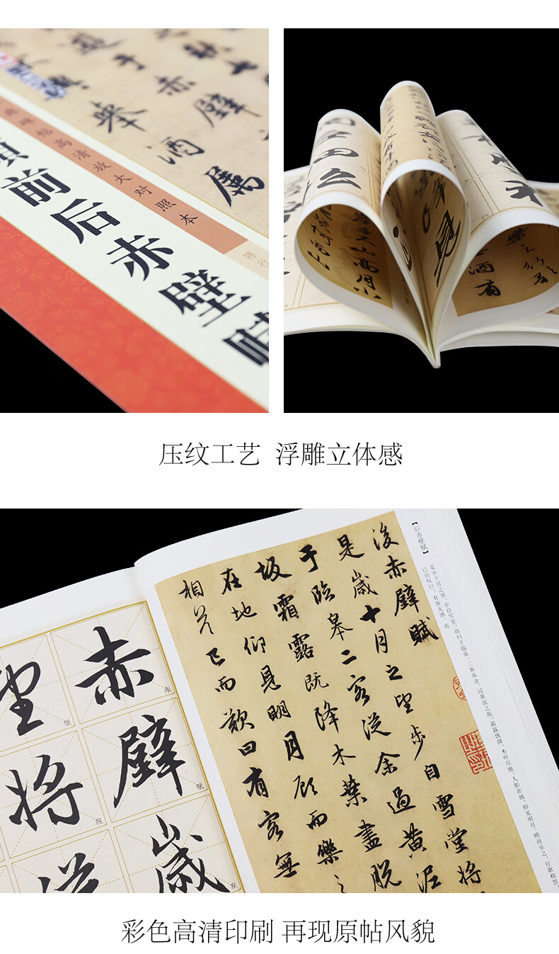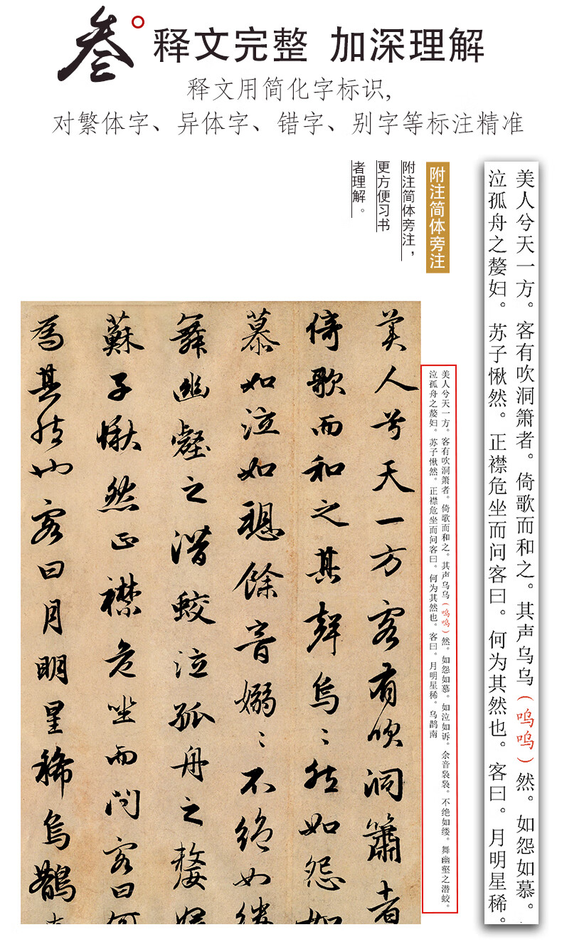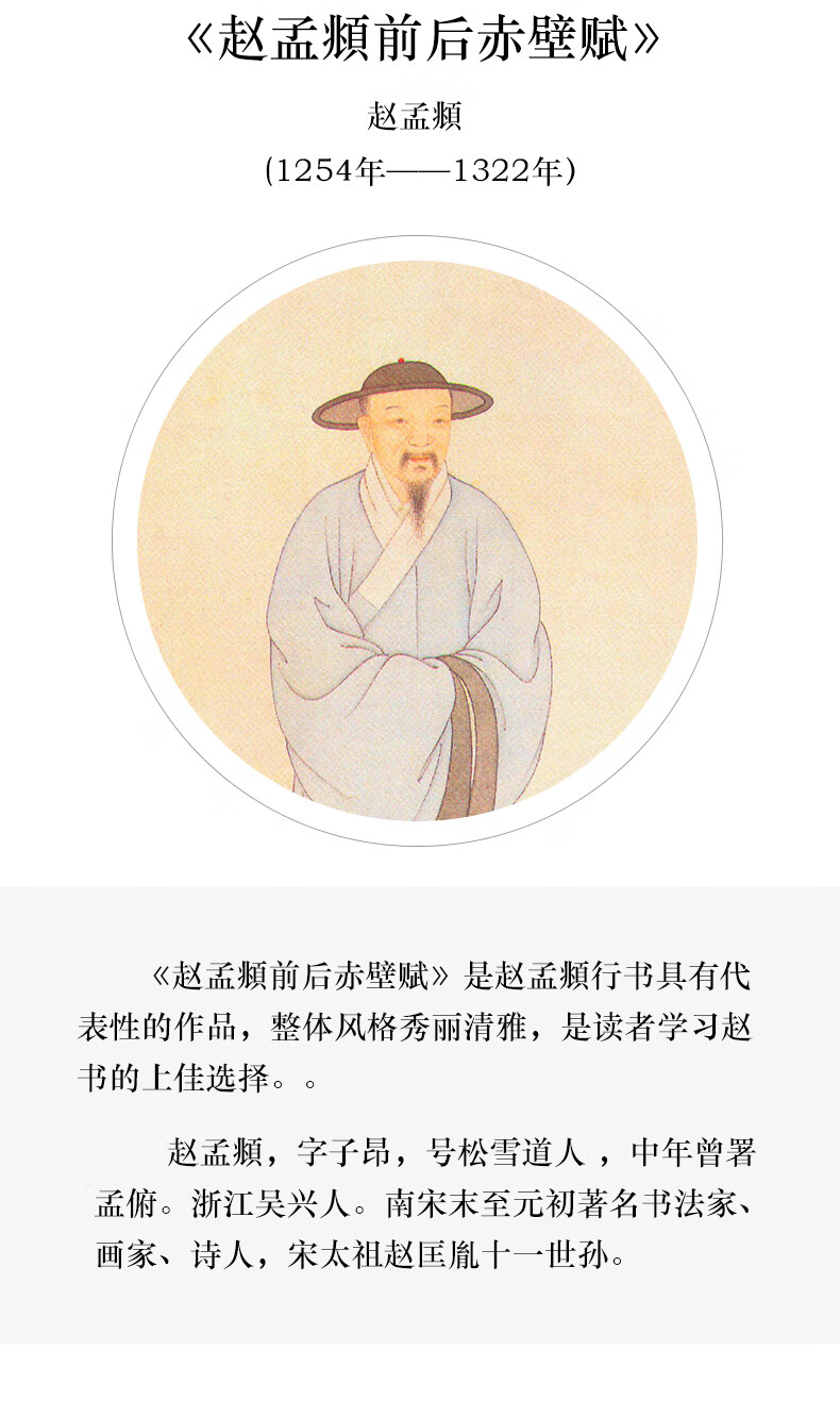 Ink dot copybook, calligraphy brush calligraphy, Zhao Mengfu's before and after Chibi Fu of Luo Shen, high-definition enlarged comparison version of classic stele calligraphy from past dynasties, simplified marginalia, running script calligraphy on stele calligraphy