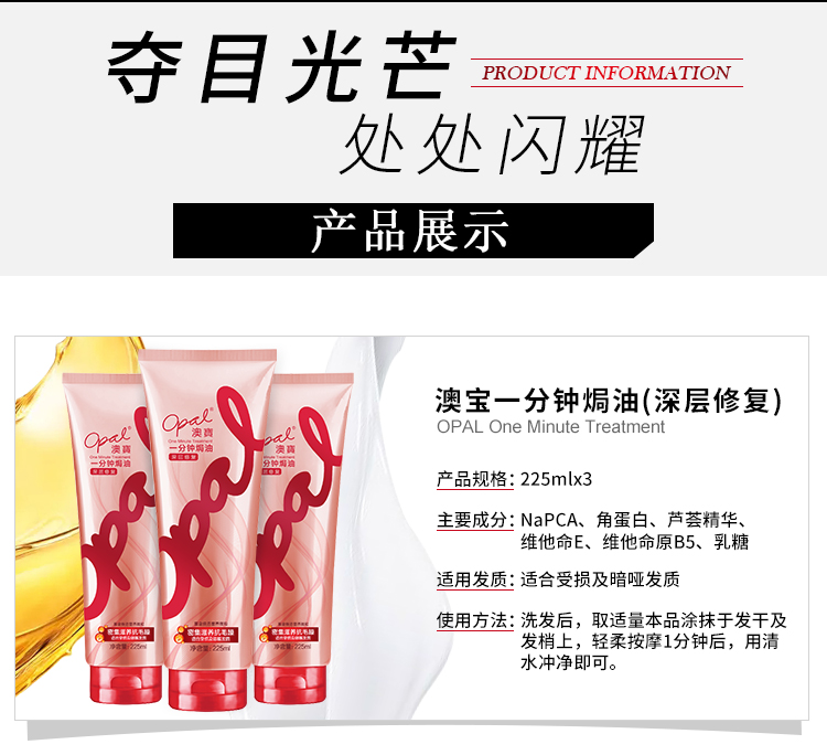 Opal Hair Conditioner Deep Repair Improves Frizz, Dryness, Moisturizing, Dyeing, and Perm Deeply Damaged Hair Smoothing Baking Cream Deep Repair 225ml*3 (Free 80ml*2)