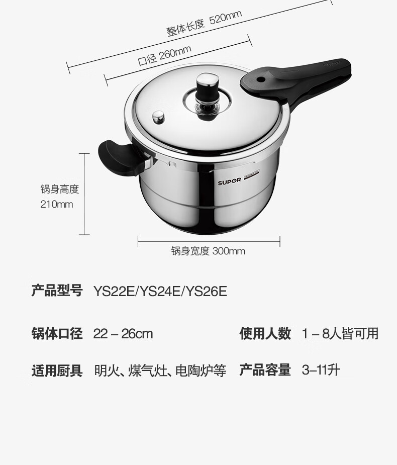SUPOR Galaxy Star 304 stainless steel pressure cooker 24cm pressure cooker gas induction cooker universal YS24E