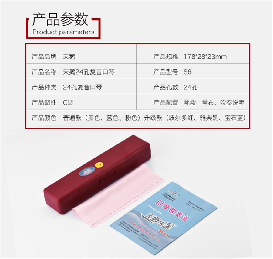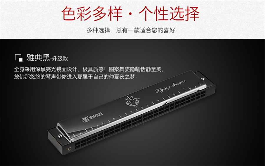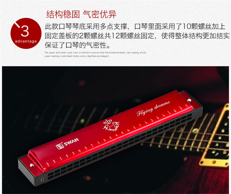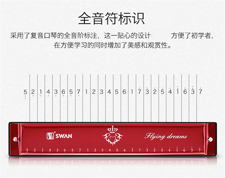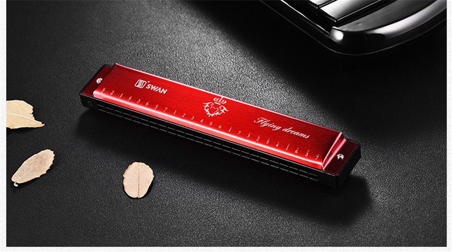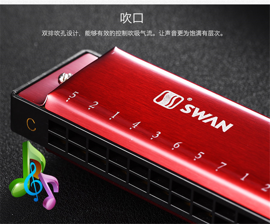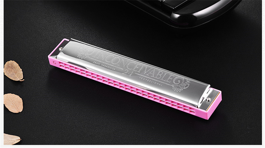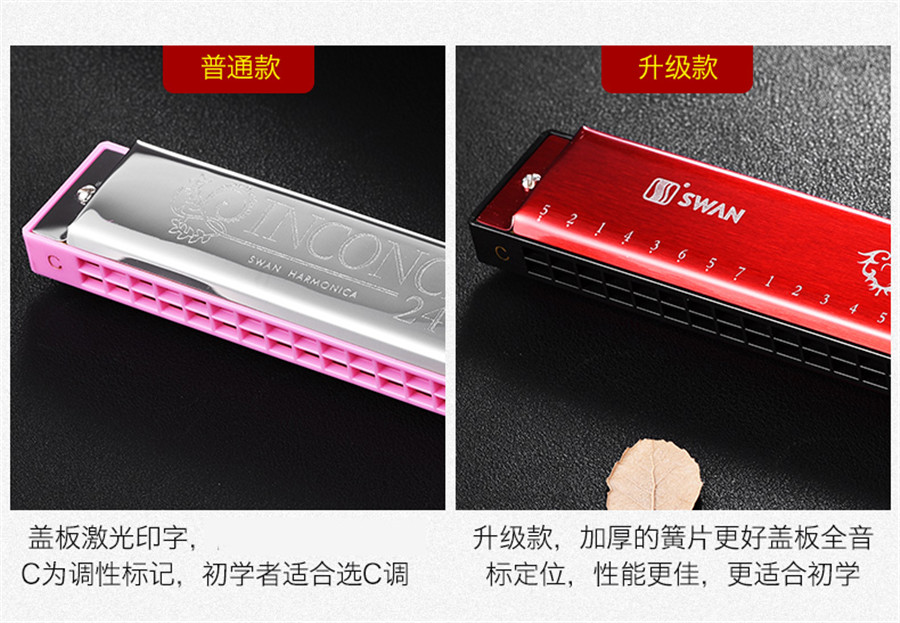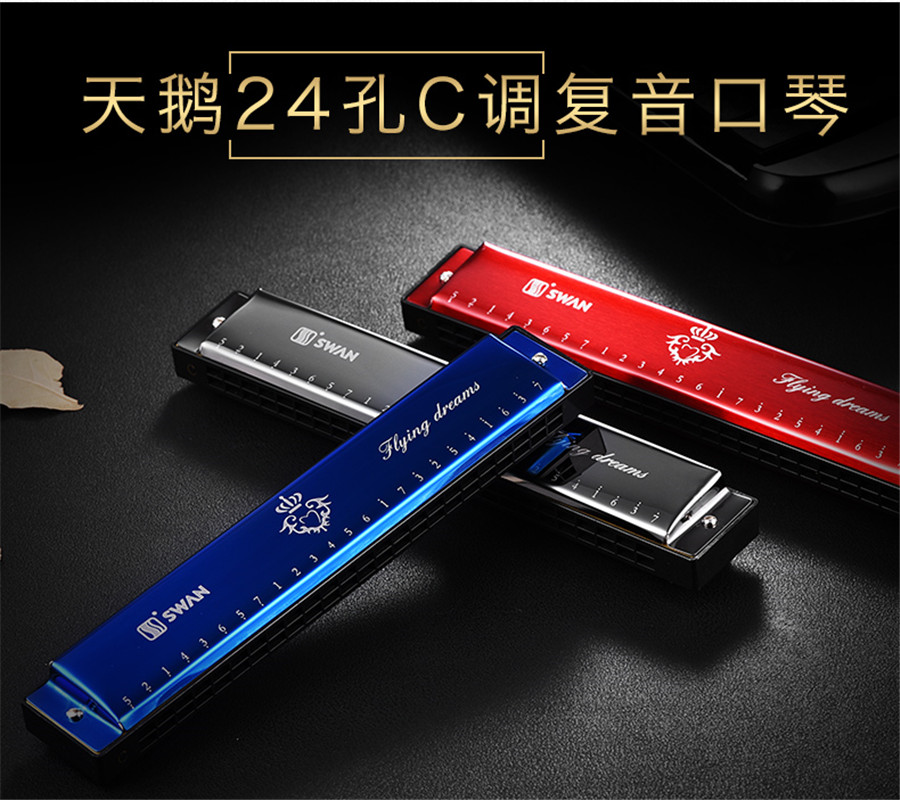 Swan Swan harmonica for children, beginners and students 24 double-hole single-note C major polyphonic professional performance instrument 24-hole pink polyphonic C-key advanced model