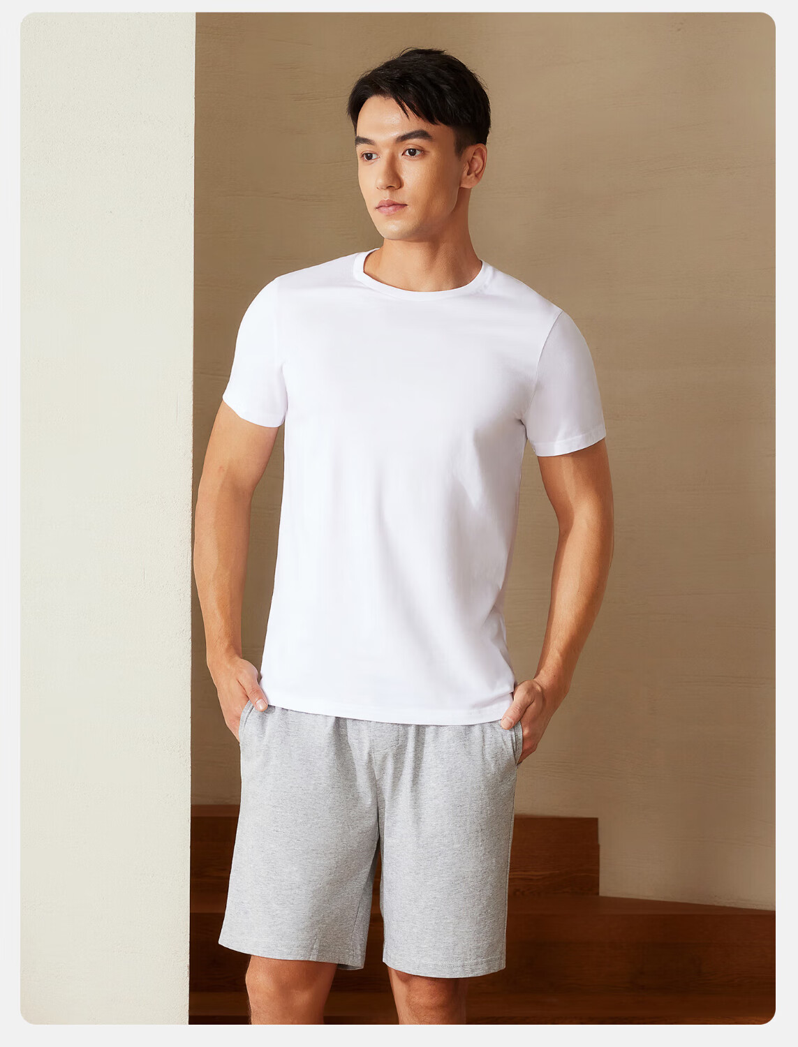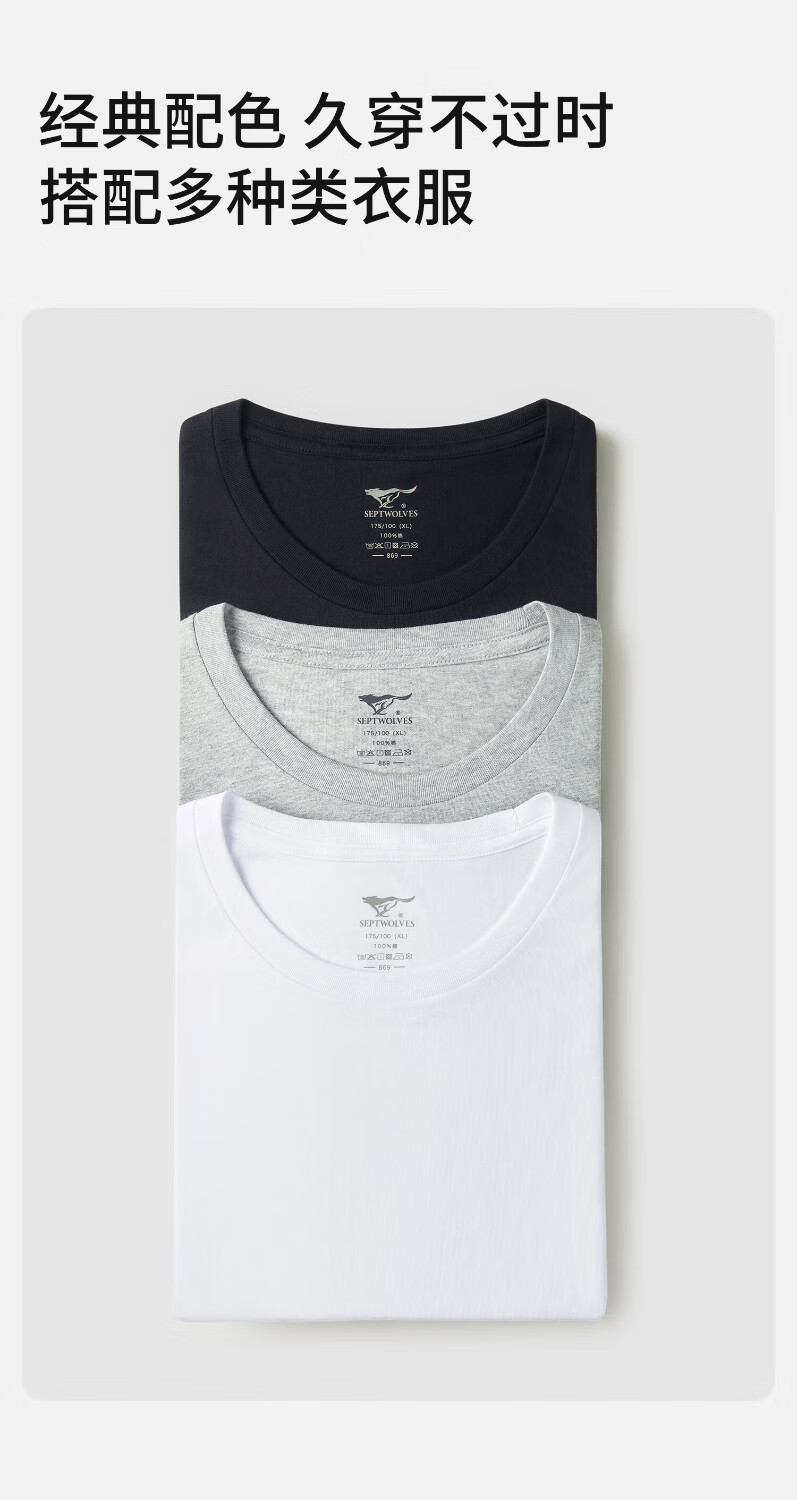 Septwolves short-sleeved T-shirt men's pure cotton summer bottoming shirt basic solid color small white T boys sports sweatshirt vest round neck white XL (175) (recommended 125-145 pounds)