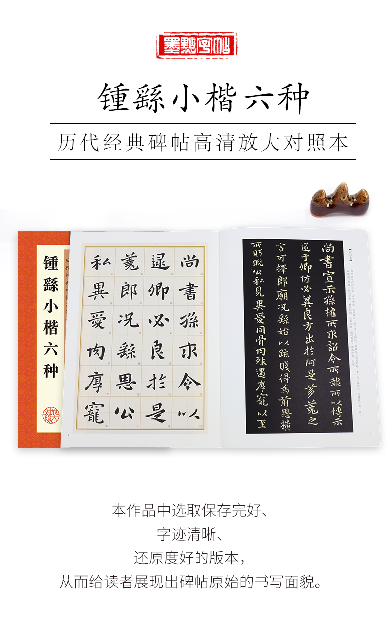 Ink dot copybook, Zhong Yao's six types of oath form in small regular script, also expresses He Jie's recommendation, Ji Zhi's statement, tomb field, Bingshe's statement, strength and fate chart, small regular script brush calligraphy copybook example, enlargement comparison technique analysis tutorial