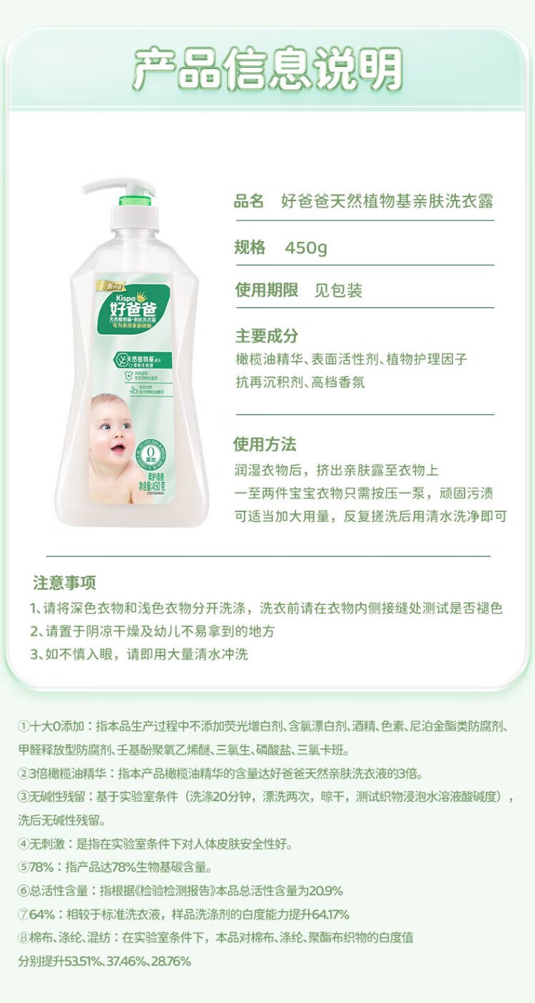 Good Daddy Kispa natural skin-friendly laundry detergent 450g bottled laundry detergent hand wash special underwear and underwear suitable for sensitive skin