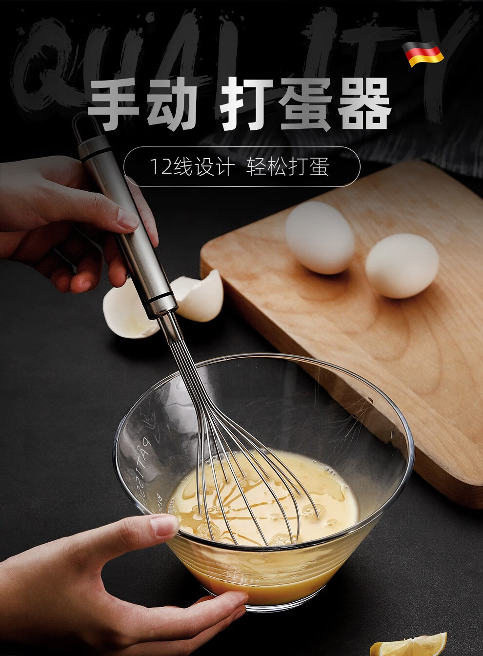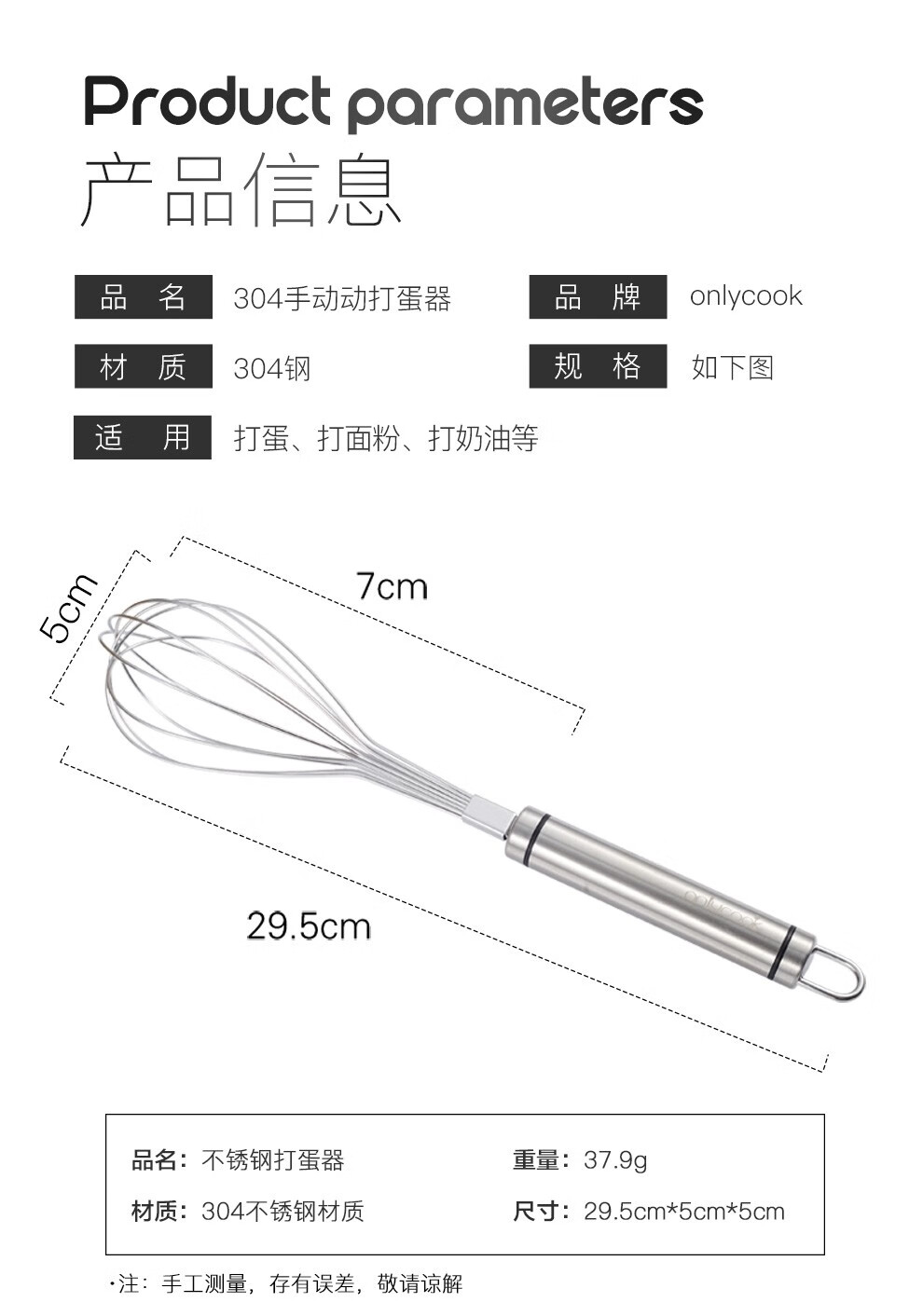 Onlycook 304 stainless steel egg beater, manual egg beater, baking cream mixer, egg beater/single