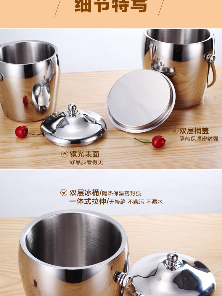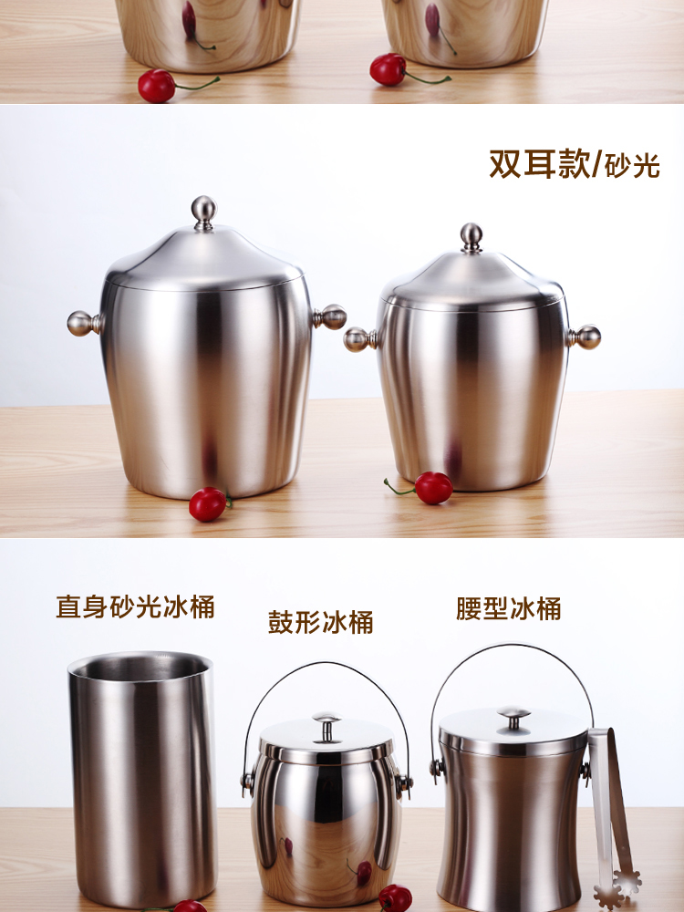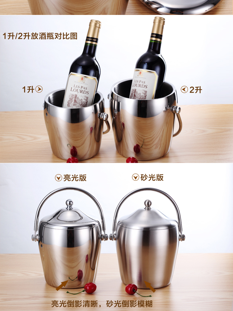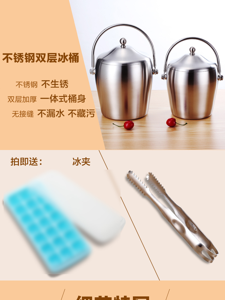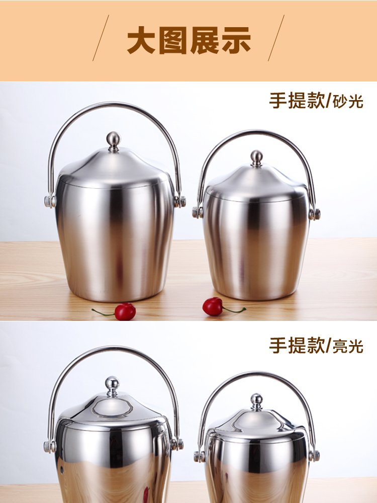 Yunchu new big-ear thickened double-layer stainless steel red wine ice bucket ice wine bucket wine bucket with lid to keep fresh 2L with handle
