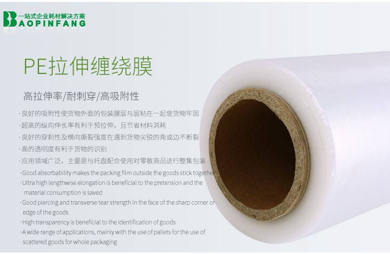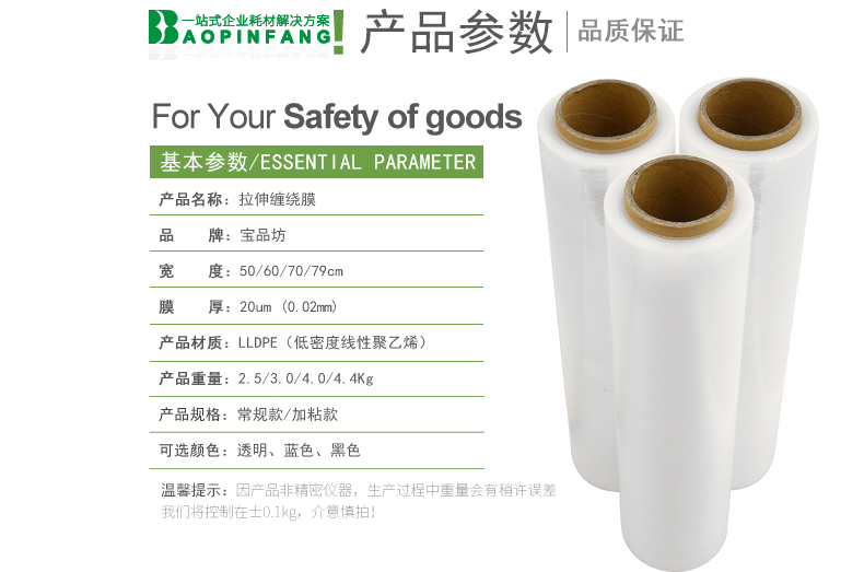 Baopinfang PE stretch film 50cm wide stretch film pallet packaging film cargo strapping film self-adhesive industrial hand plastic packaging film (4KG) width 50cm * length 450m