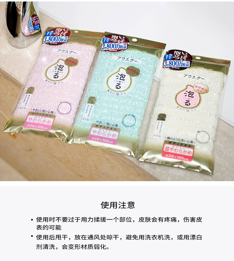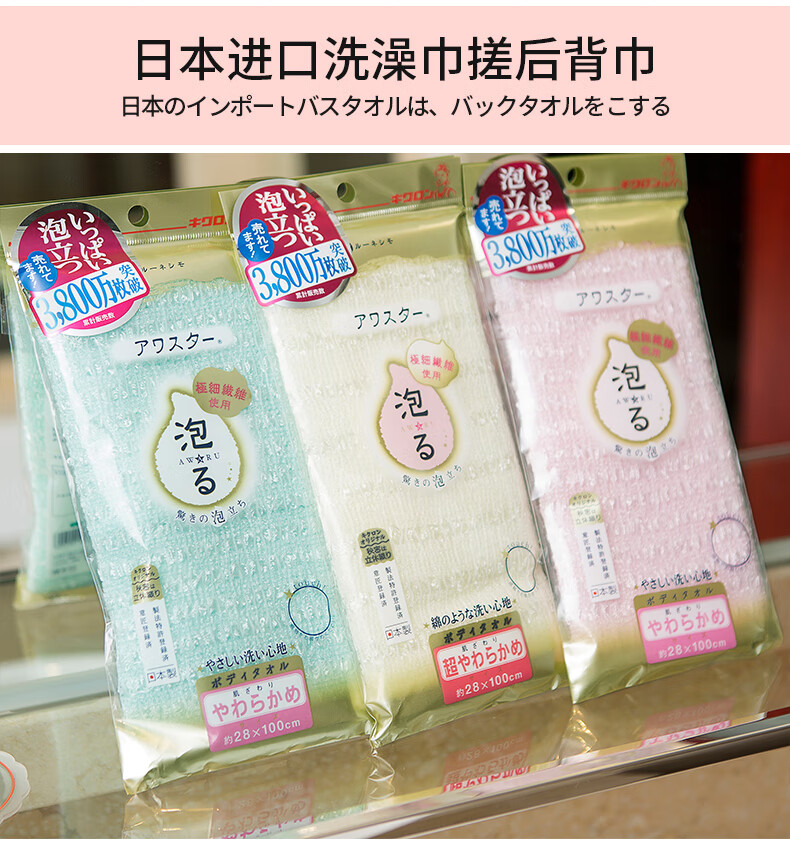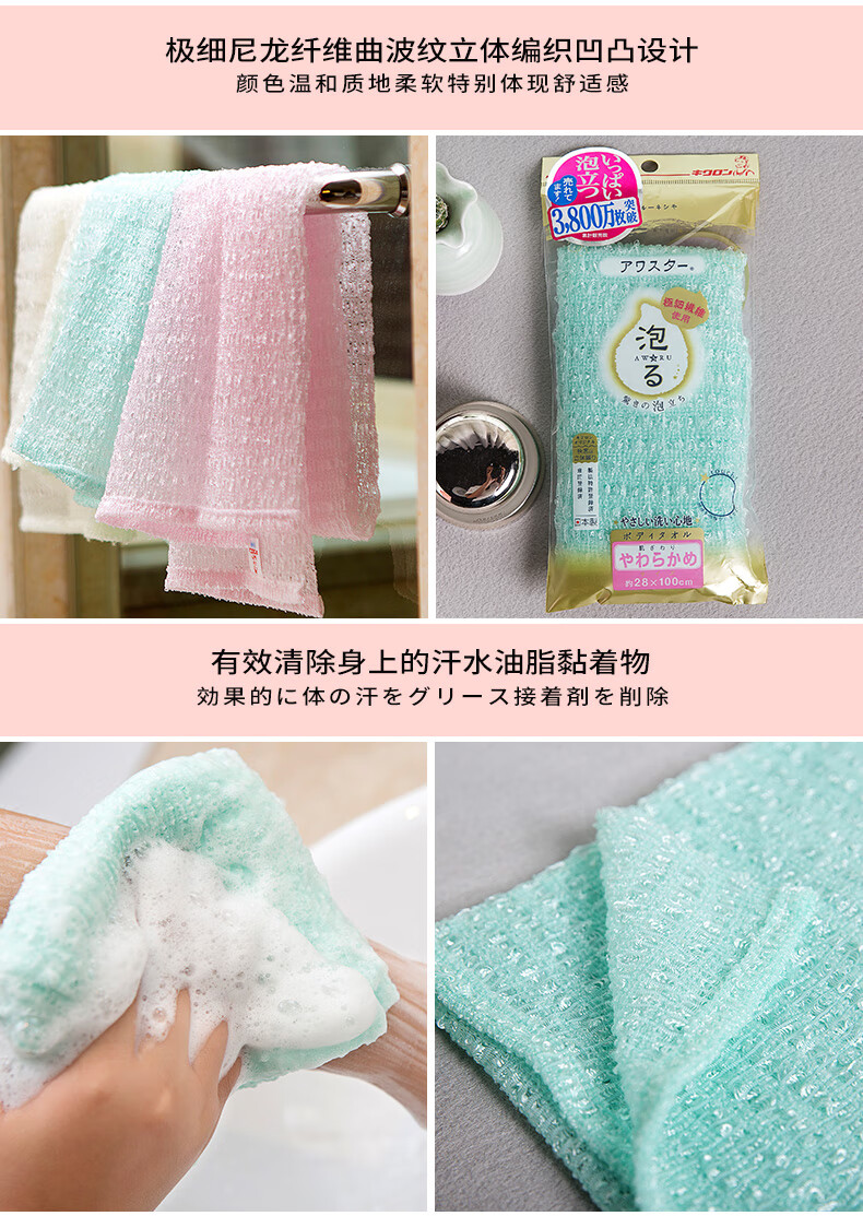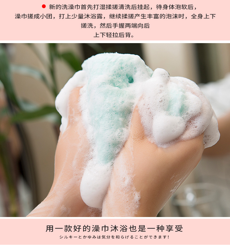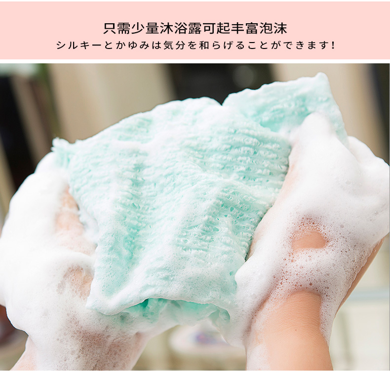 Cyan pomelo Japanese imported bath towel women's mild strong decontamination bath towel exfoliating bath towel long back rub 1 piece QKG-006 bubble stand (green)