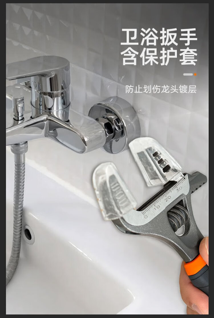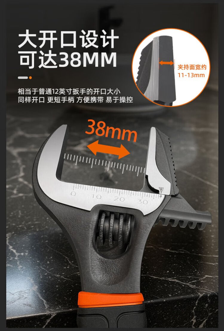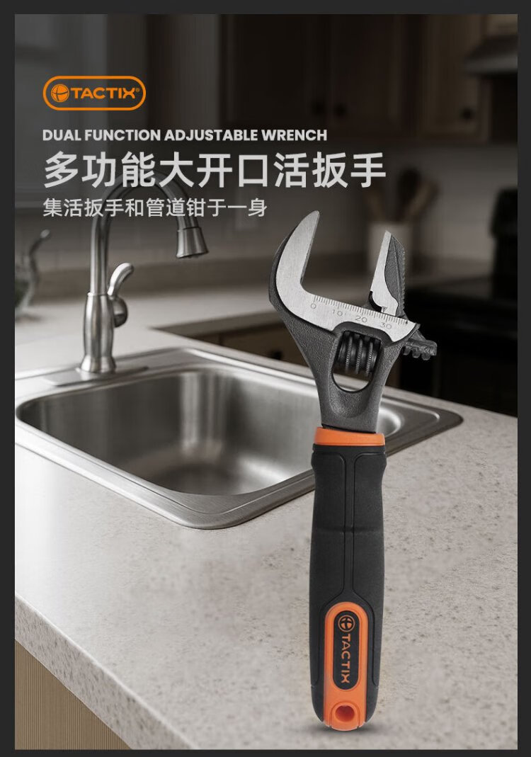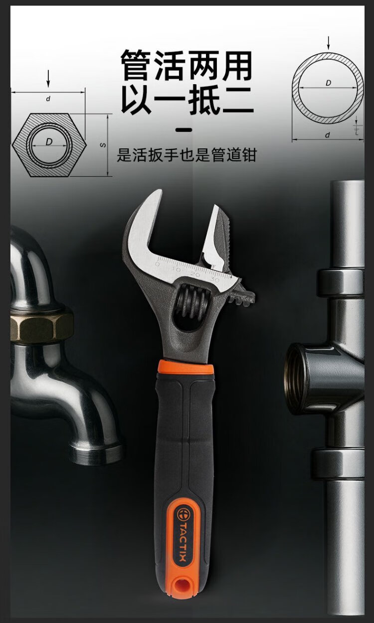 Tactix adjustable wrench large opening dual-purpose universal torque live mouth bathroom wrench anti-slip water pipe pliers for home use 900064