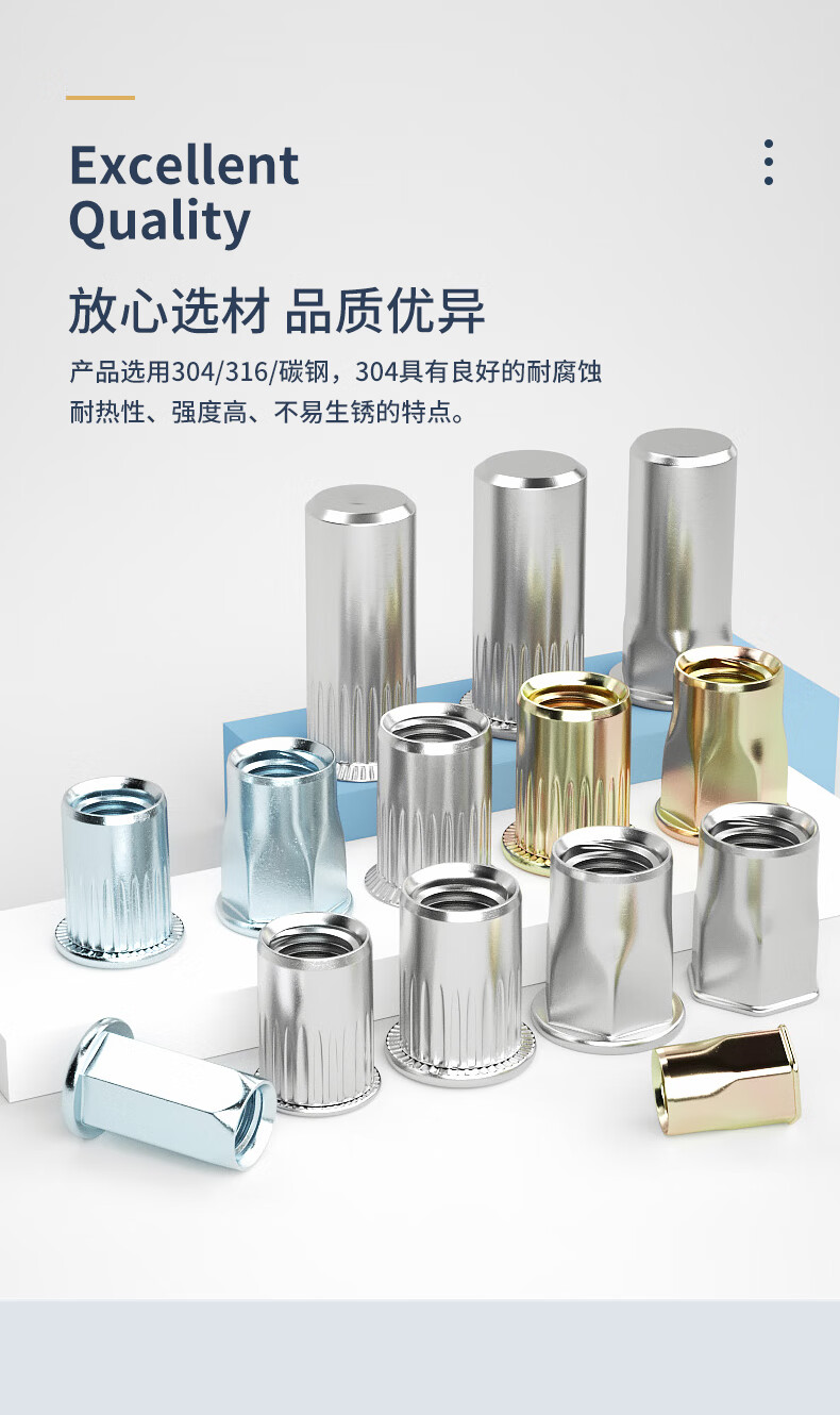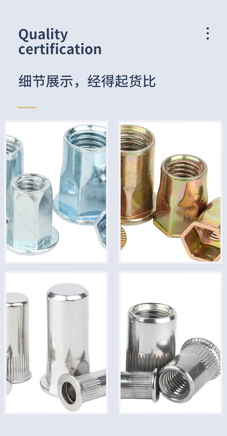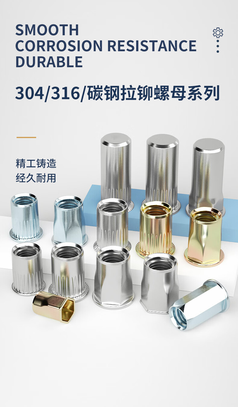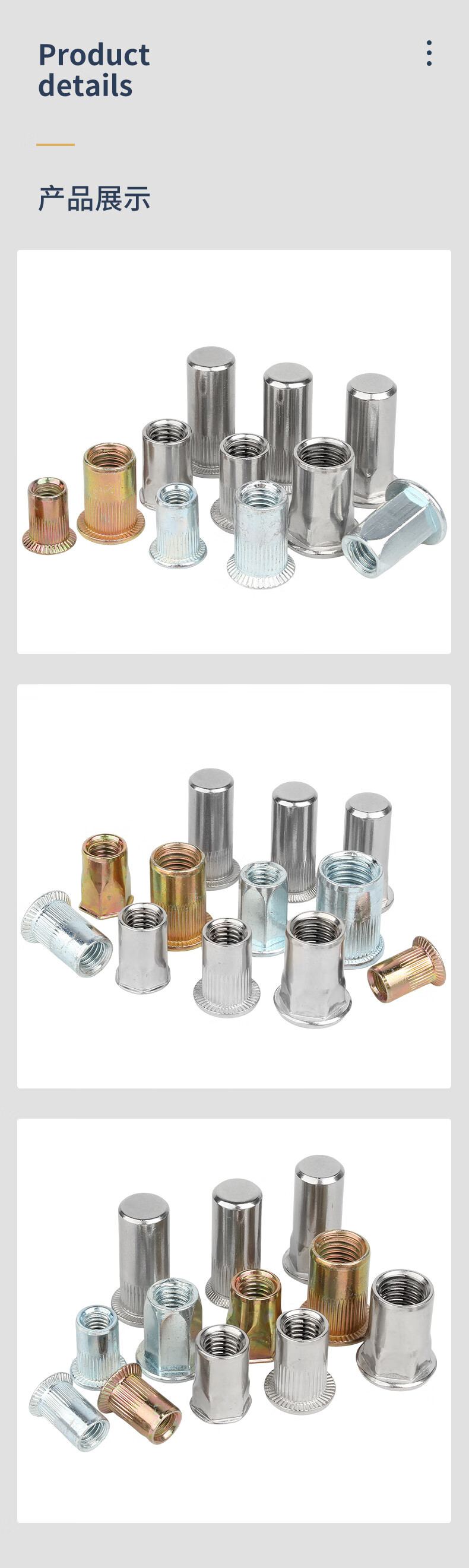 Guwanji 304 stainless steel rivet nut flat head knurled rivet nut pull cap rivet cap national standard standard parts M6 304 flat head - 10 pieces