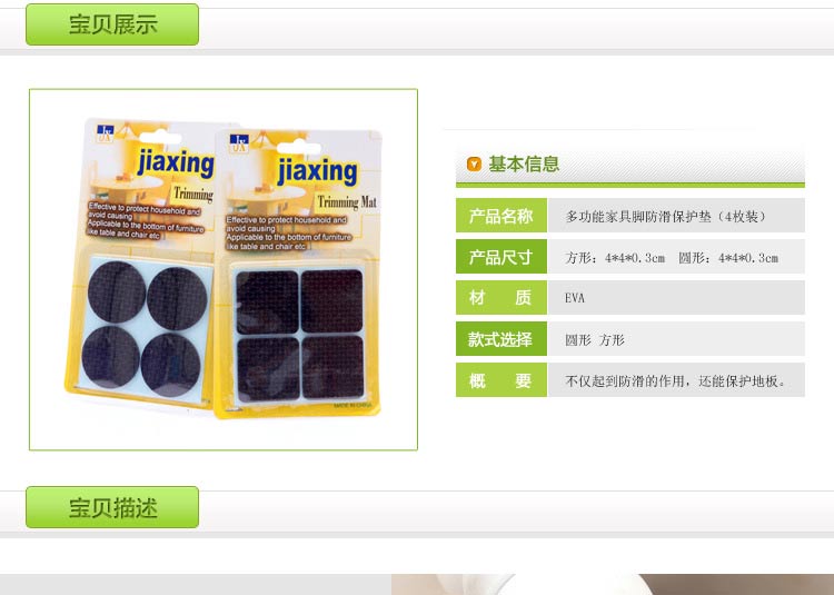 Yu Yi EVA table and chair foot pads table stool legs chair foot pads furniture wooden floor anti-slip mat 4cm square table and chair foot pads (4 pieces 1 box) 4*4*0.3cm