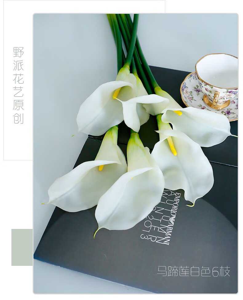 Wild touch moisturizing calla lily artificial flower home living room decorative flower artificial flower display hotel exhibition hall flower arrangement 1 piece hand feeling calla lily white
