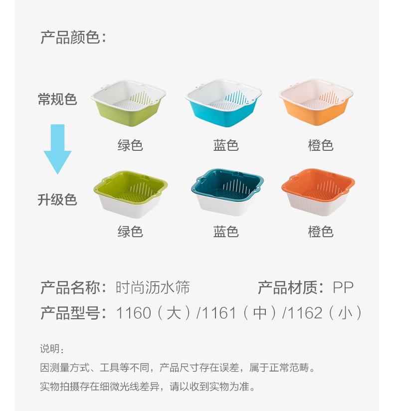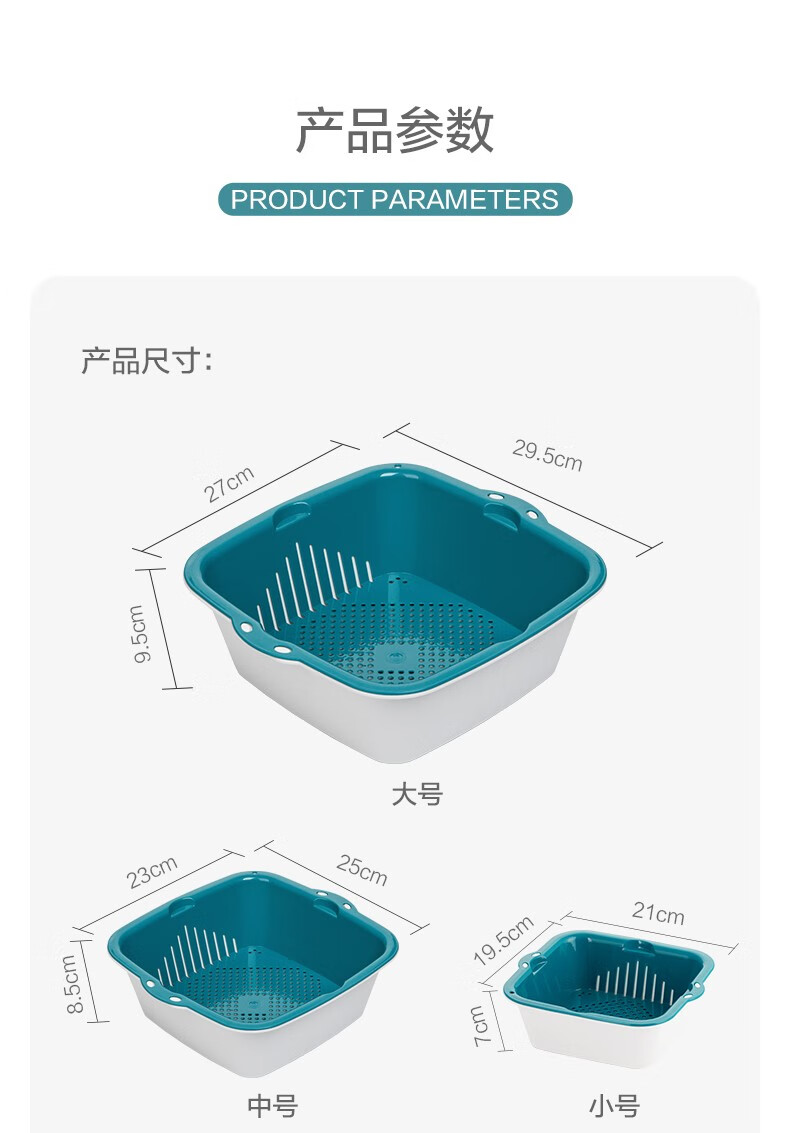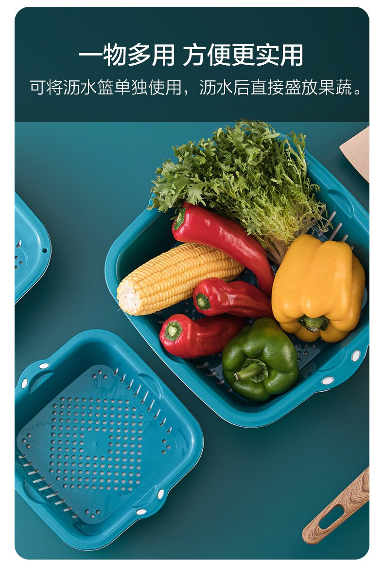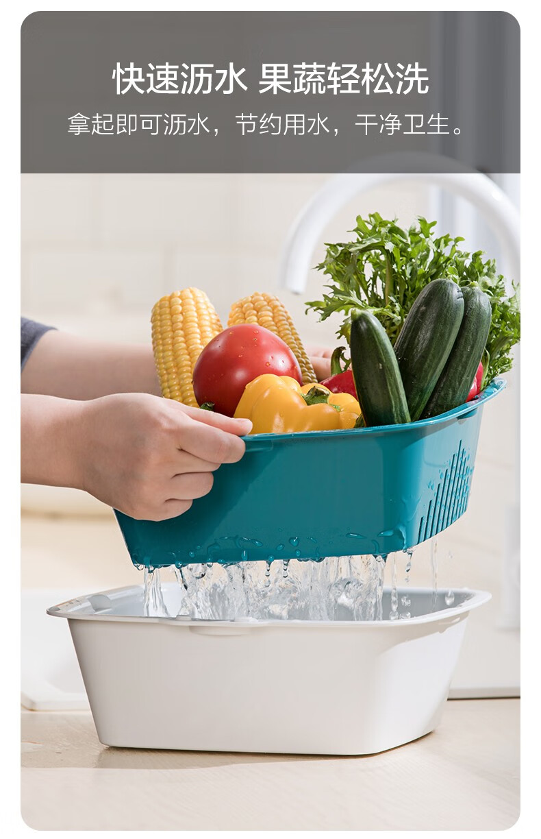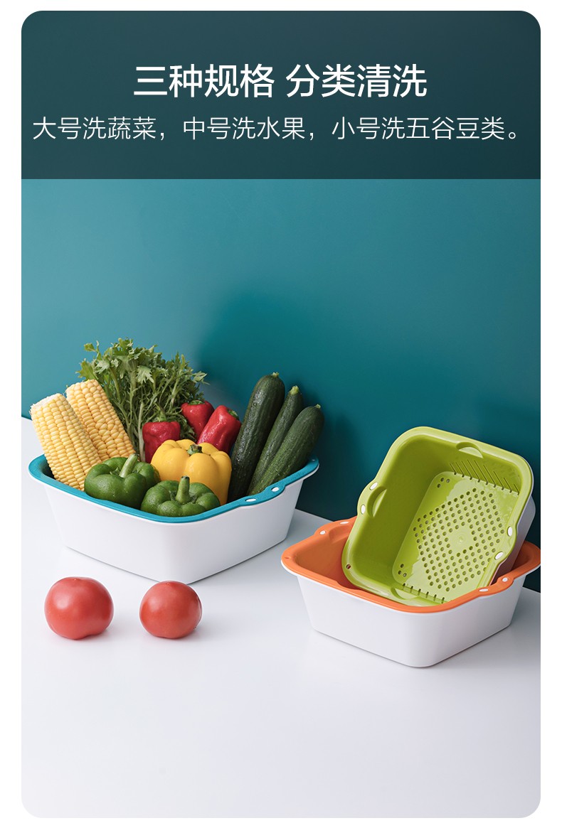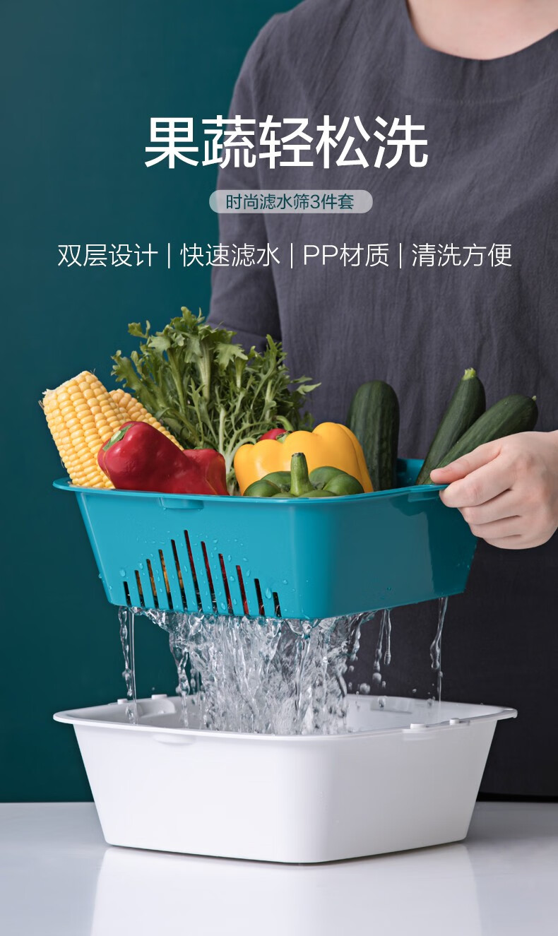 Camellia storage basket, double-layer vegetable washing basket, multi-functional water filter basket, fruit basket, fruit and vegetable drain basin, vegetable sieve, large, medium and small, random colors, 3-piece set 2L