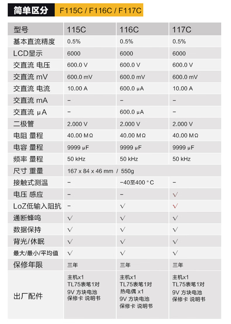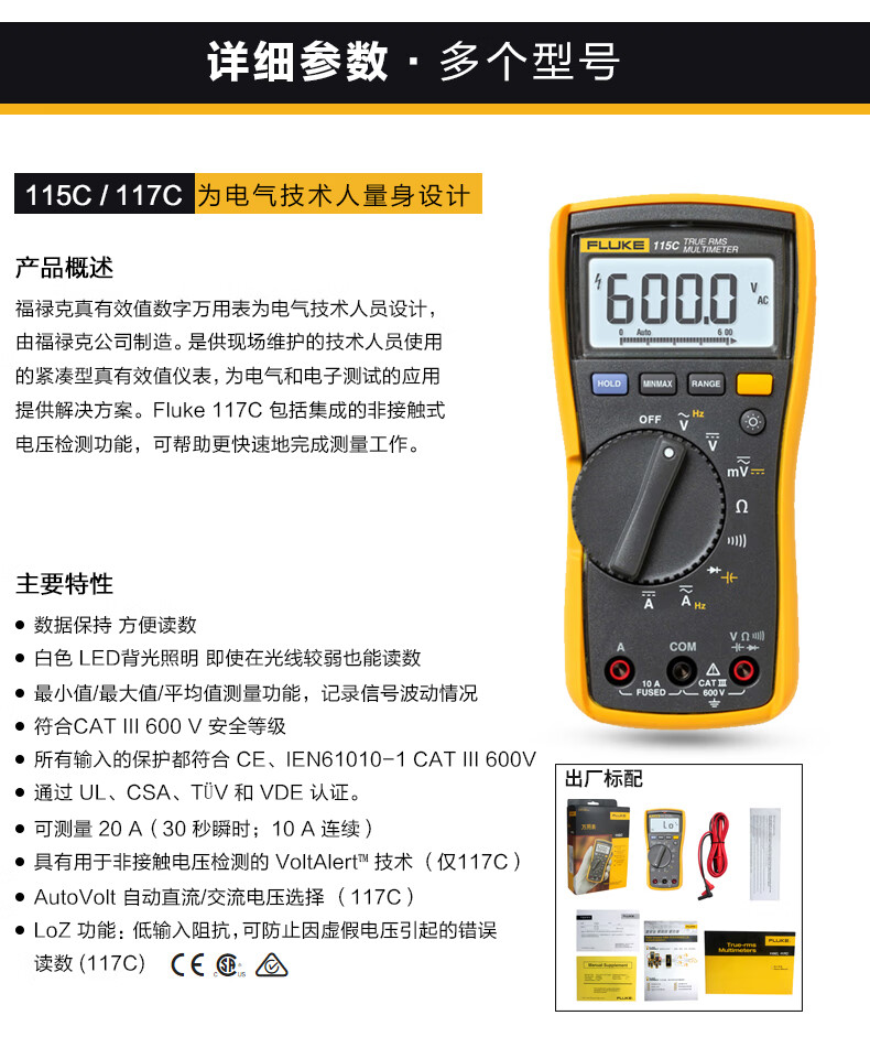 FLUKE F117C digital multimeter high-precision true RMS smart electrician electrical multimeter multi-purpose ammeter