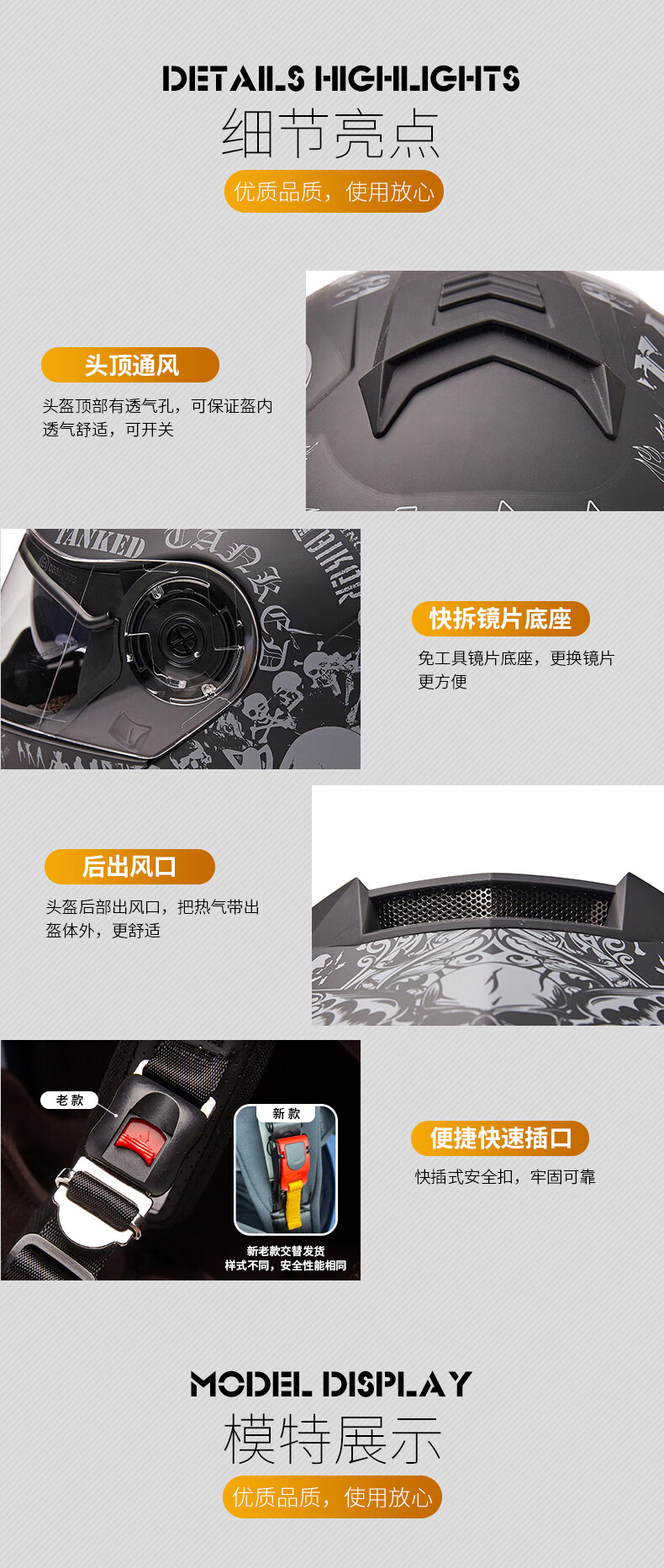 Tank T270 motorcycle helmet face-off helmet 3C men's and women's autumn and winter ventilation anti-fog safety helmet white XL