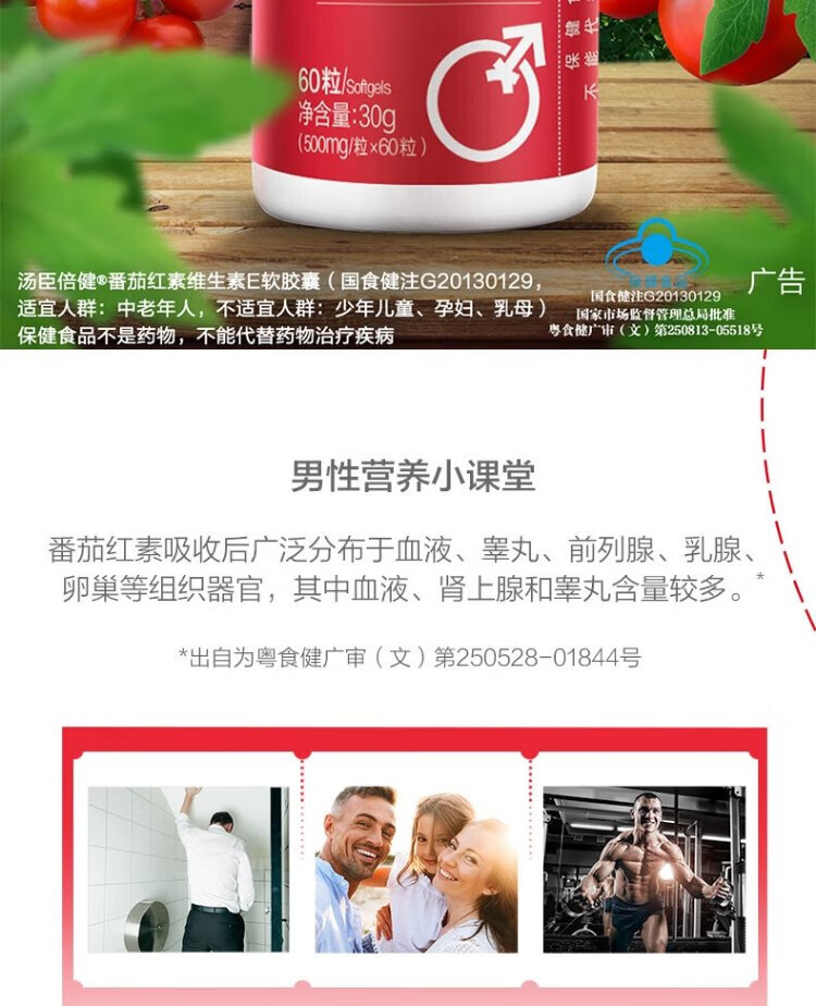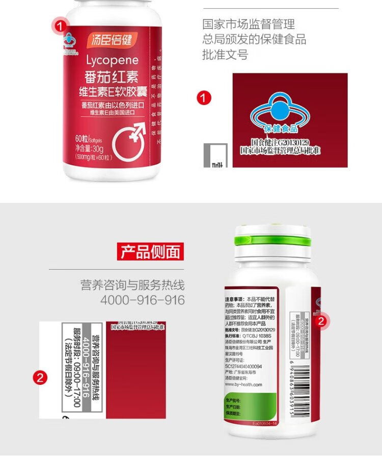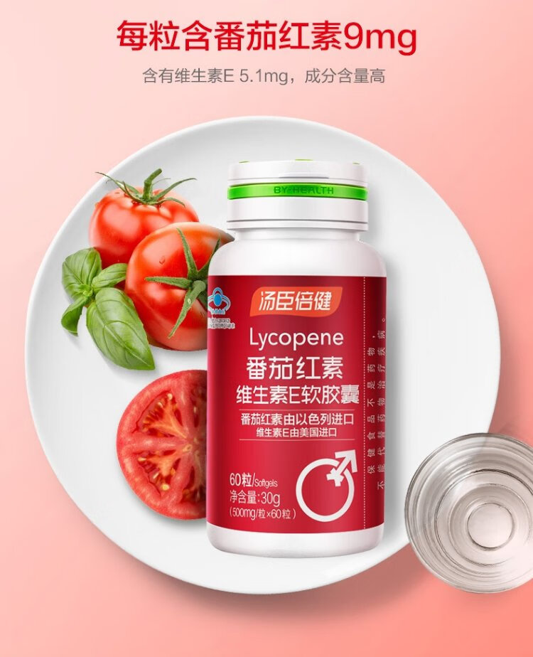 Tomson By-Health Lycopene Vitamin E Soft Capsules 60 Capsules Antioxidant for Middle-aged and Elderly Men