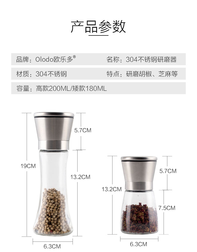 Olodo German grinder manual grinding bottle household pepper grinder freshly ground black pepper grinder tall pepper grinder (PP)