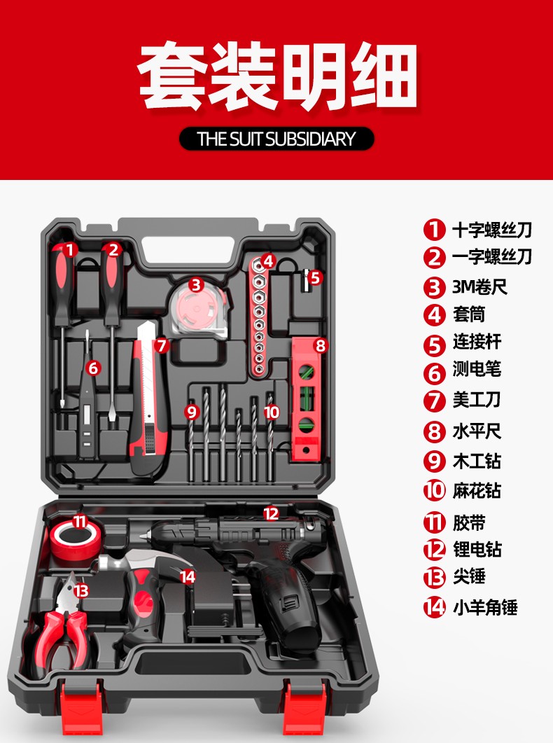 Anjieshun household tool box set hardware tool set multi-functional home electrician woodworking combination tool new 82-piece luxury tool box