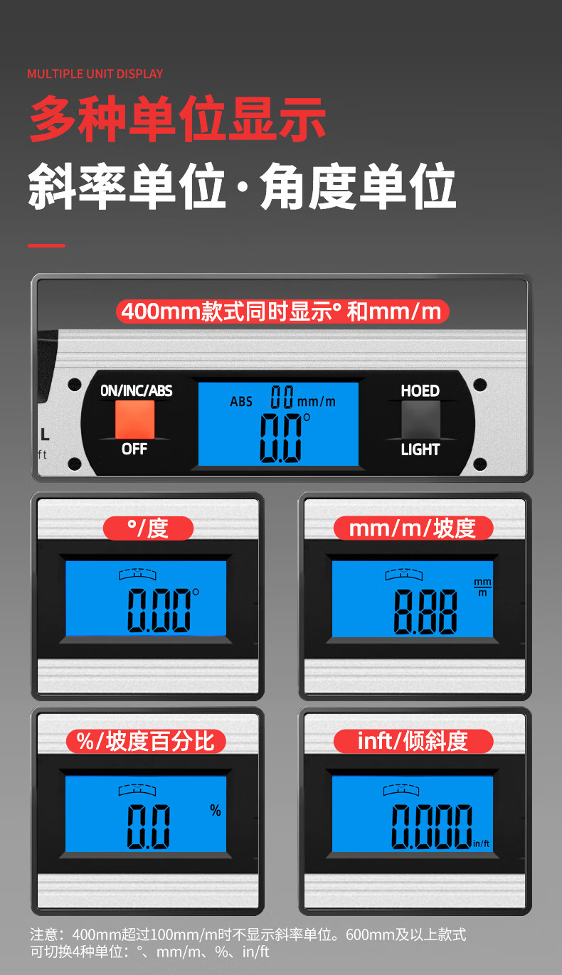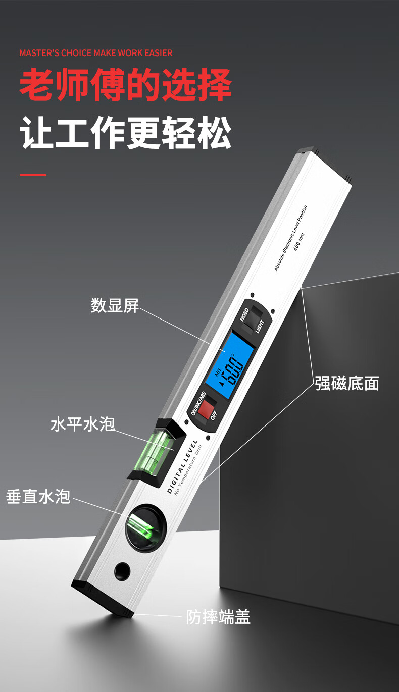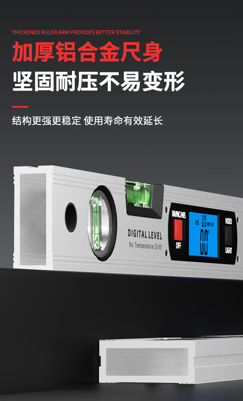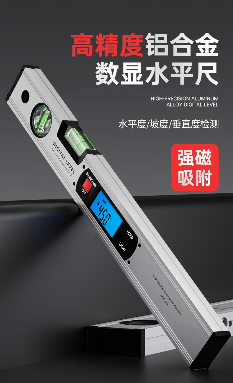 SYNTEK electronic digital level with magnetic aluminum alloy high-precision digital level slope meter for woodworking 400MM standard (non-magnetic)