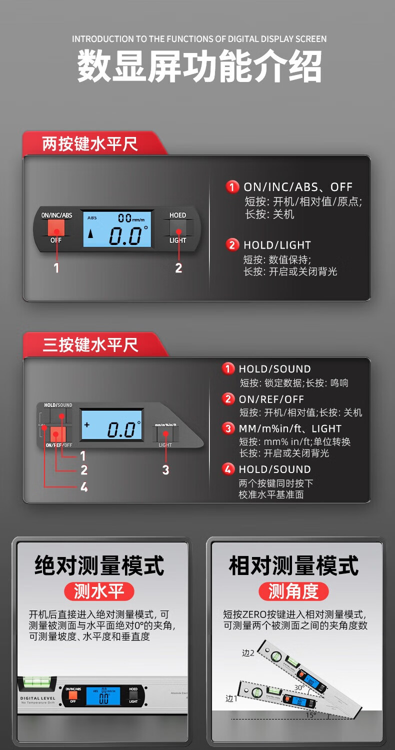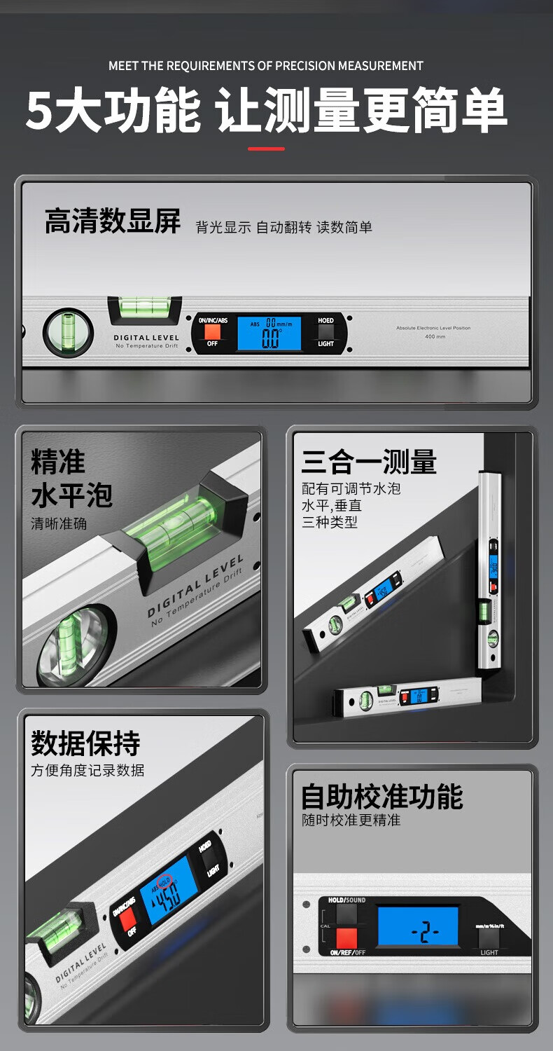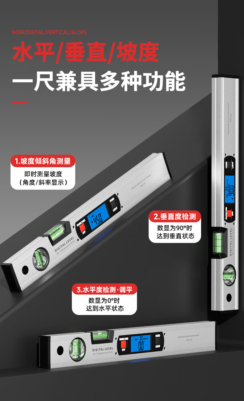 SYNTEK electronic digital level with magnetic aluminum alloy high-precision digital level slope meter for woodworking 400MM standard (non-magnetic)