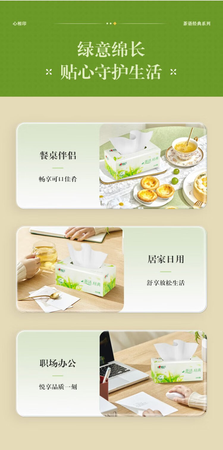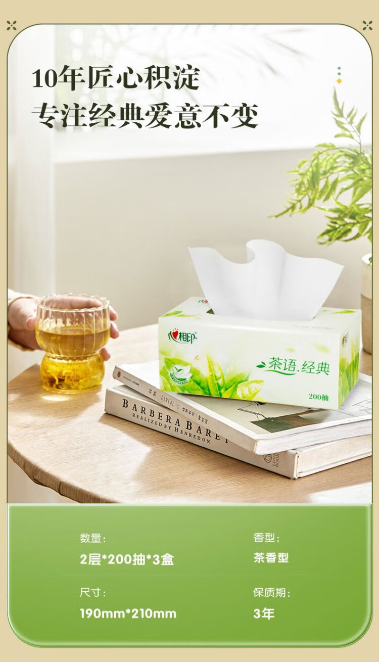 Xinxiangyin tissue/box tea classic 2 layers 200 tissue*3 boxes of tissue business meeting office facial tissue H200