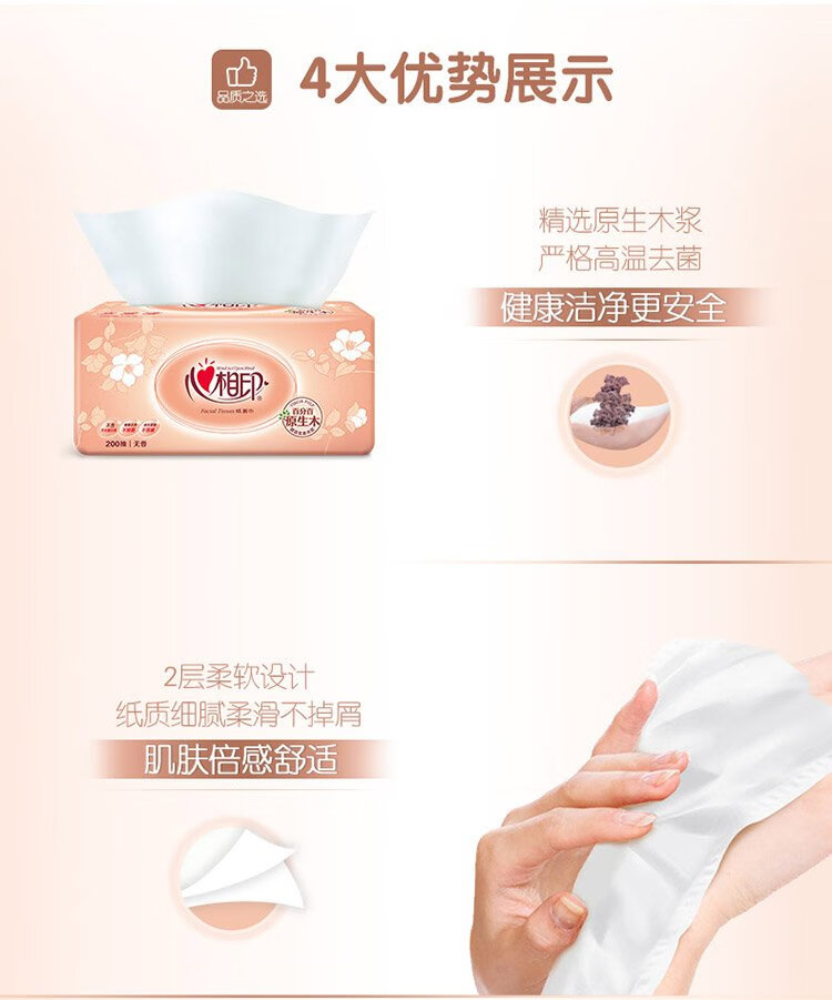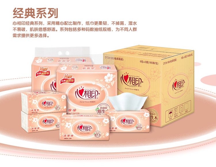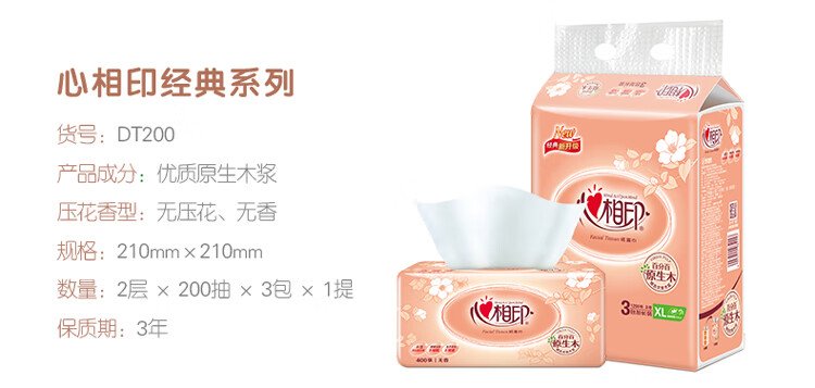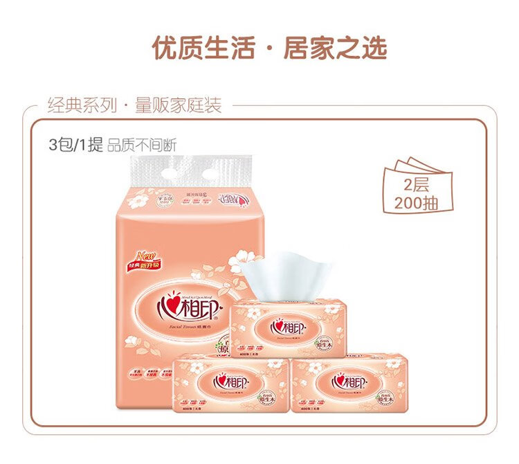Xinxiangyin Tissue Facial Tissue Classic Series 2 layers 200 Tissues*3 packs