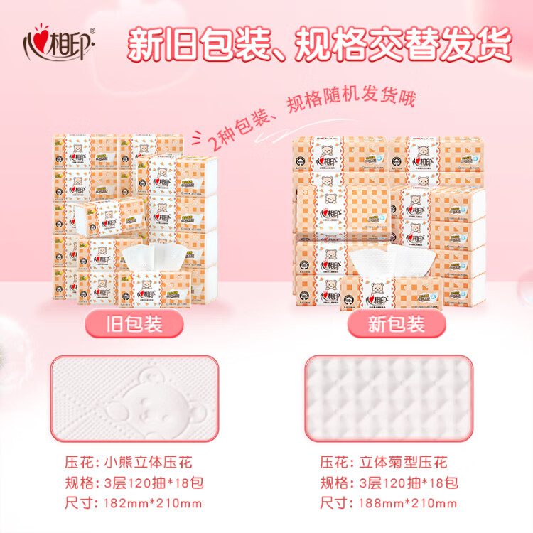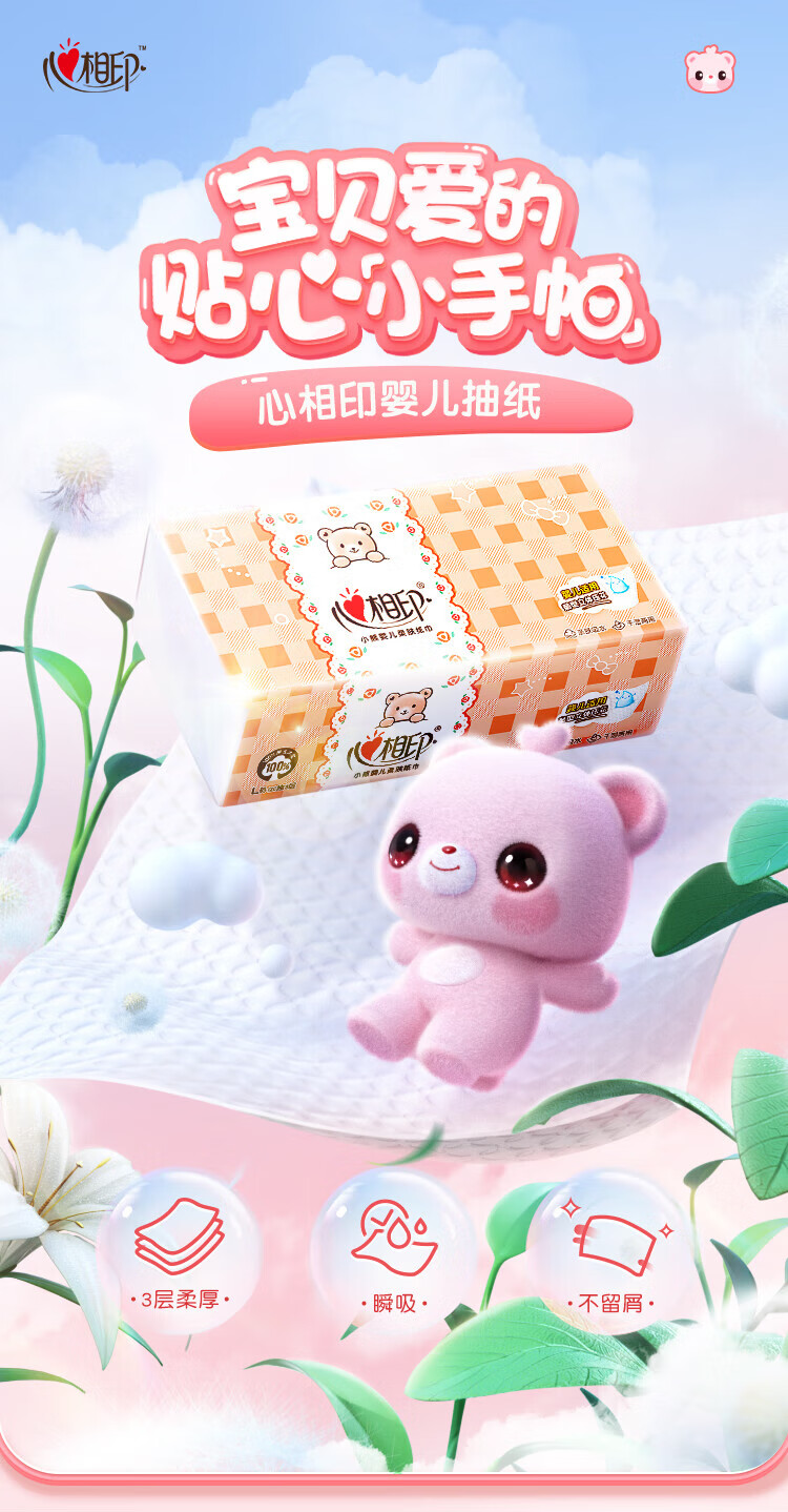 Xinxiangyin baby tissue paper 3 layers 120 sheets * 3 packs plus size L (available for mothers and infants, baby tissue sold in packages)