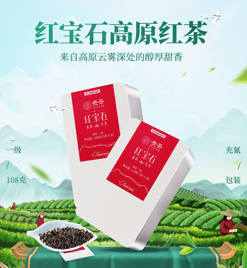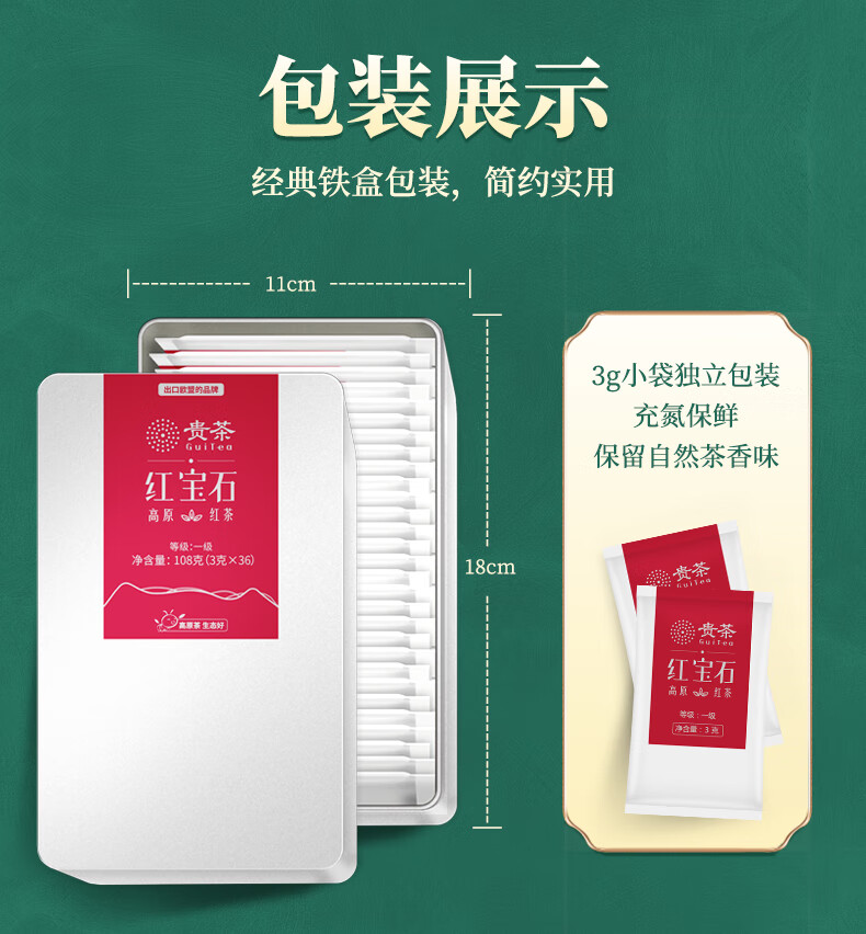 Expensive tea, ruby black tea, first-grade plateau tea, independent small bag 3g*36 bags/iron box 108g for self-drinking