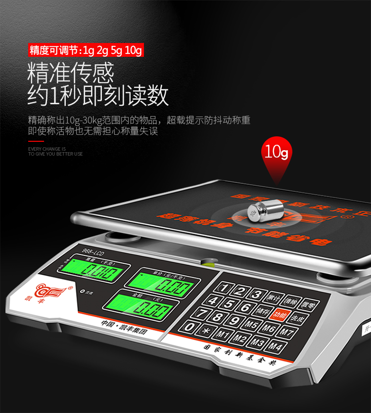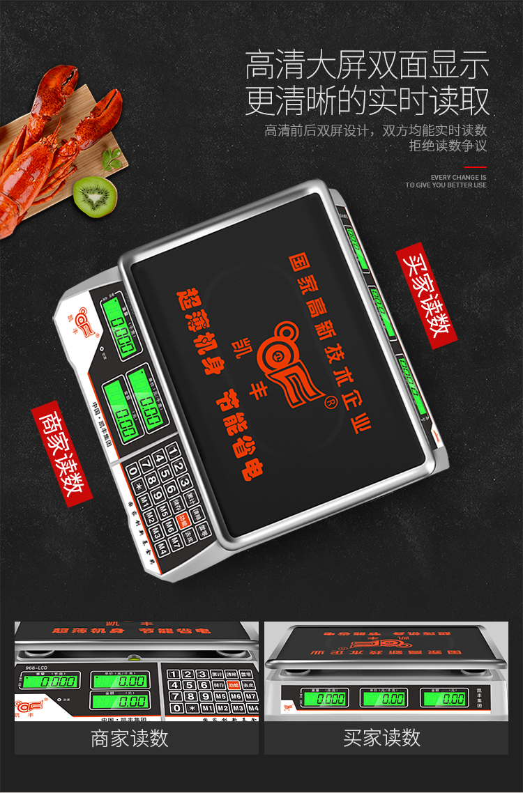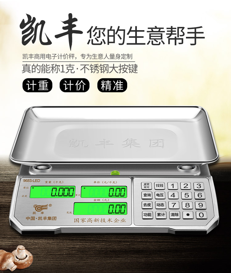 Kaifeng electronic price scale, electronic scale, precision platform scale 30kg, kitchen electronic scale, fruit scale, double-sided display, ordinary buttons, concave plate