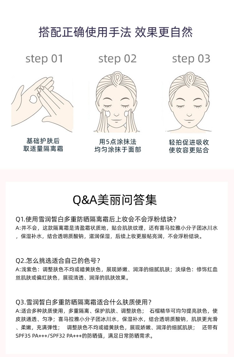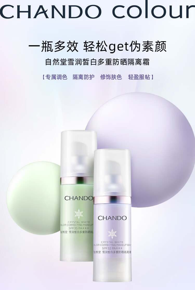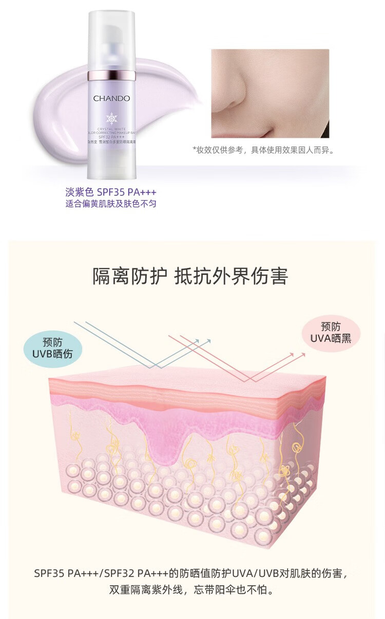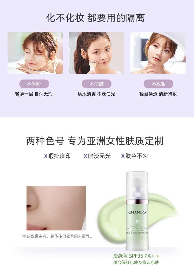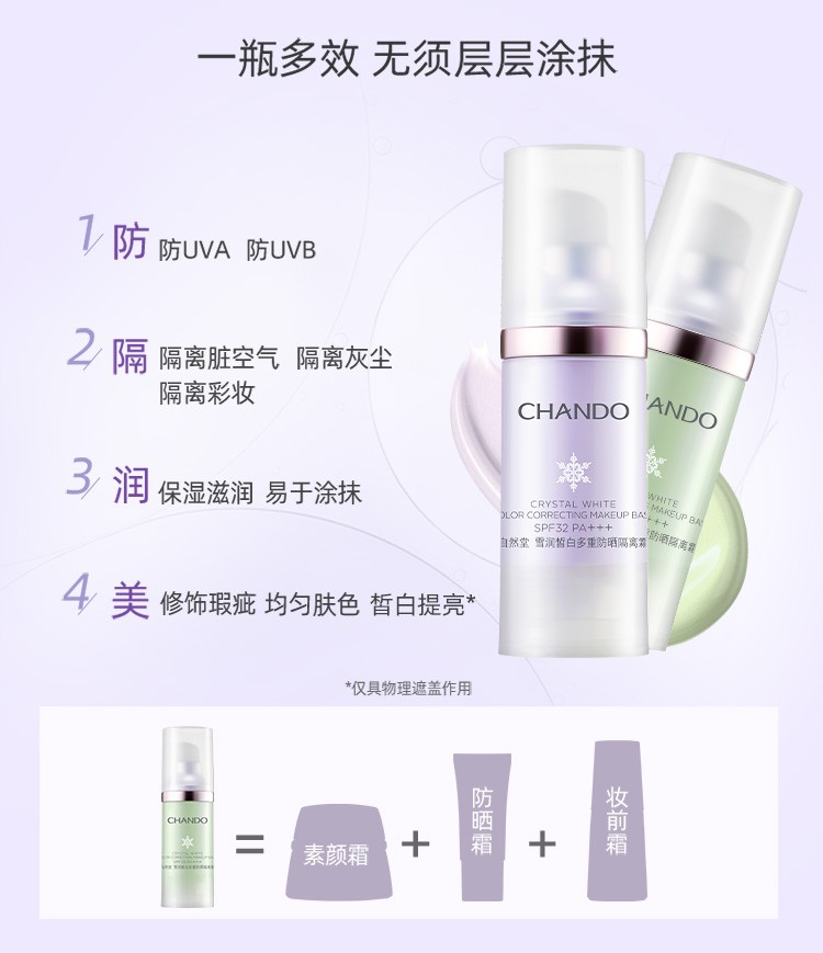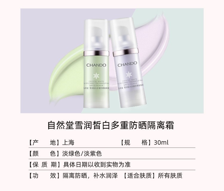 Chando Snow Whitening Multi-Sunscreen Isolation Cream Two-in-One Makeup Primer, Concealer, Repair and Moisturizer 30ml Lilac SPF32PA+++