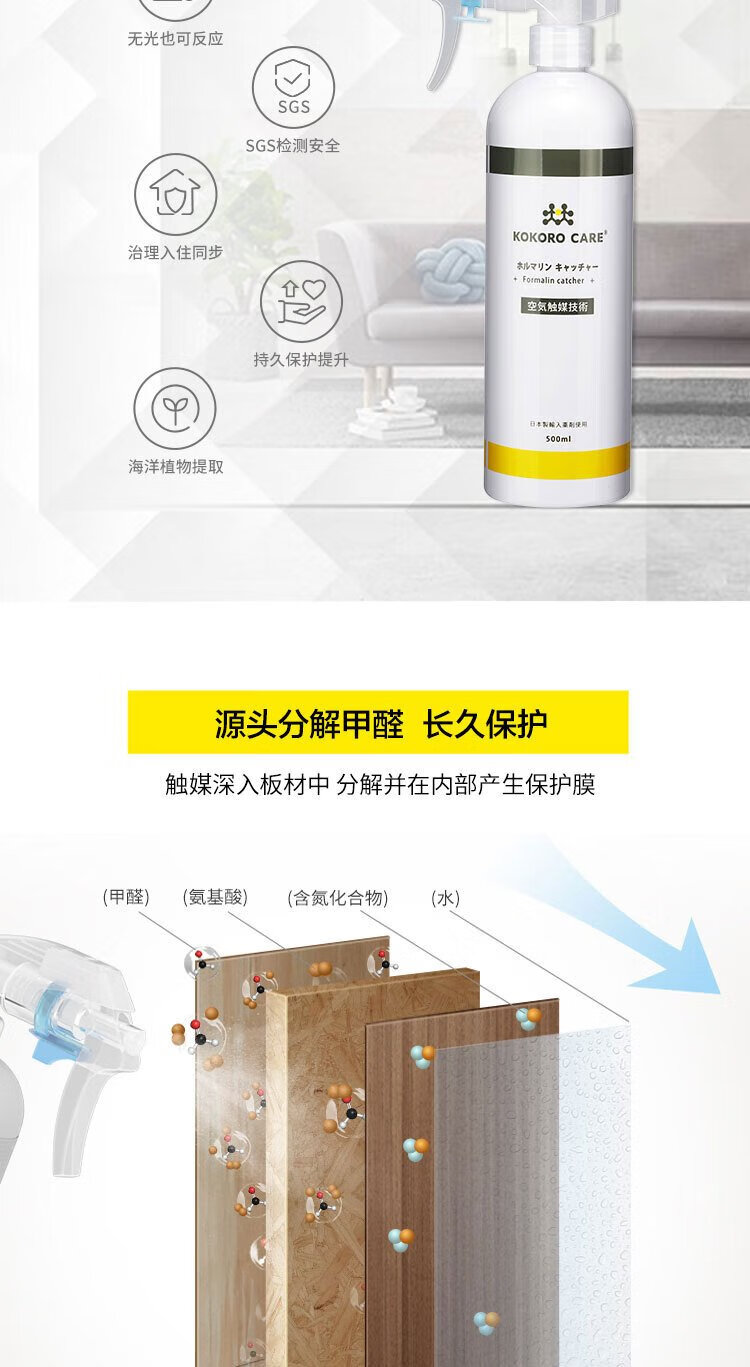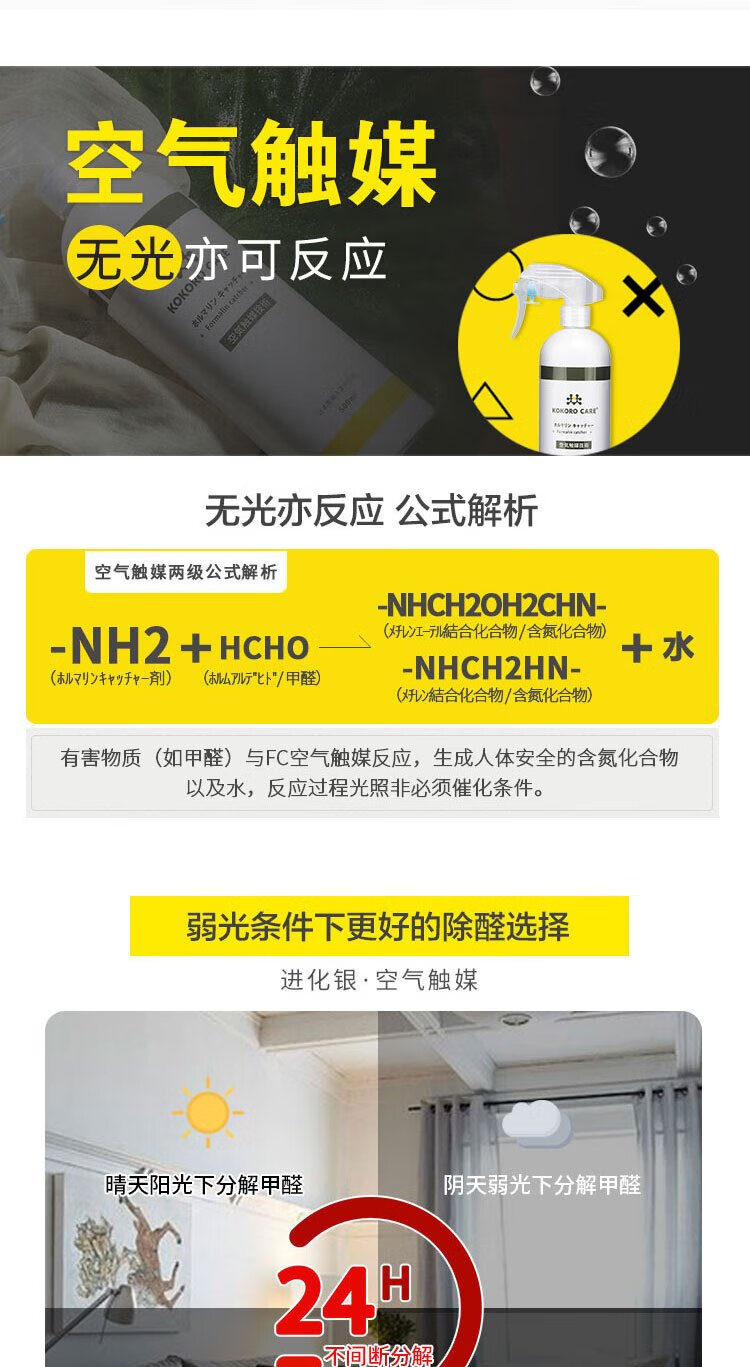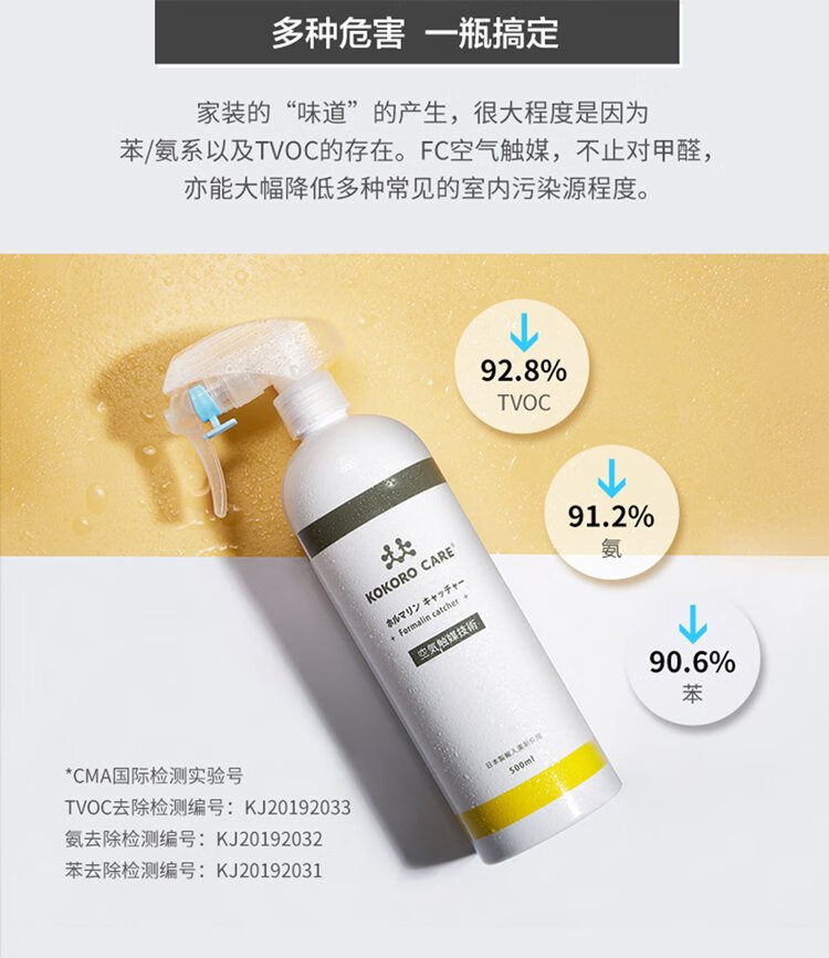Evolution Silver (KOKOROCARE) Japan Air Catalyst Rapid Formaldehyde Scavenger Aniline TVOC New House Furniture Leather Sofa New Car Deodorizer 500ml*1 Bottle