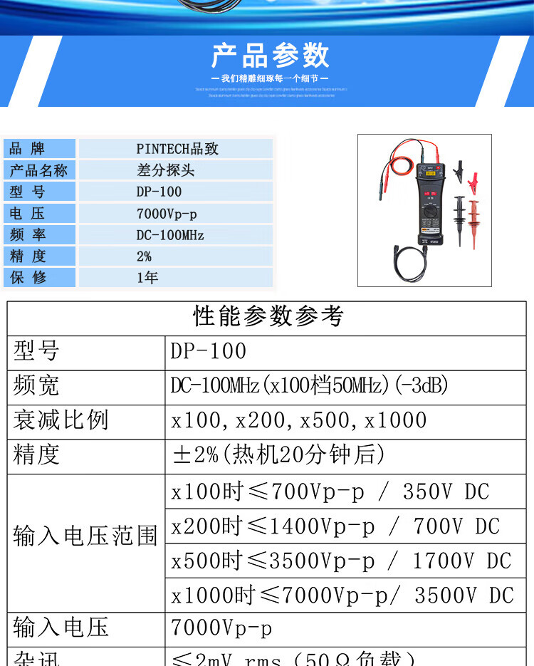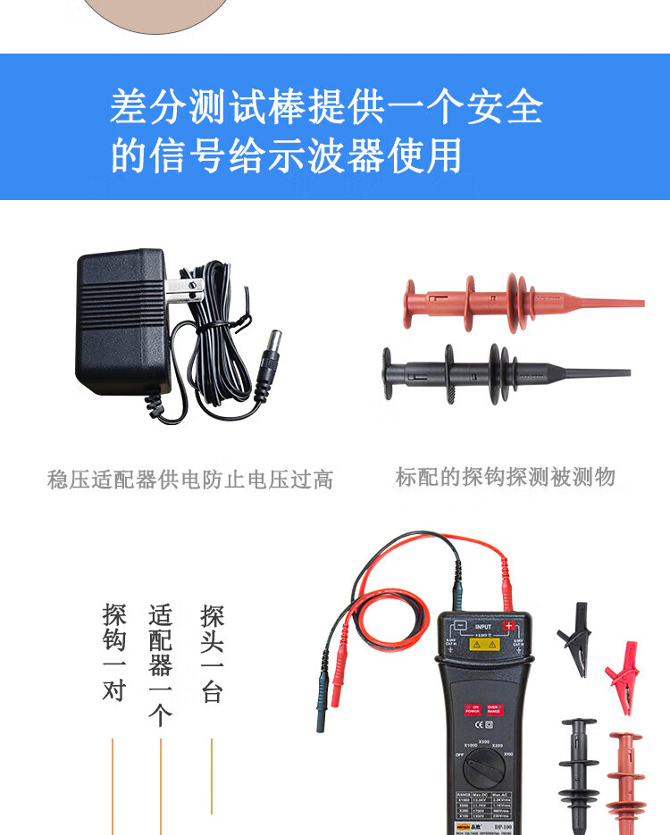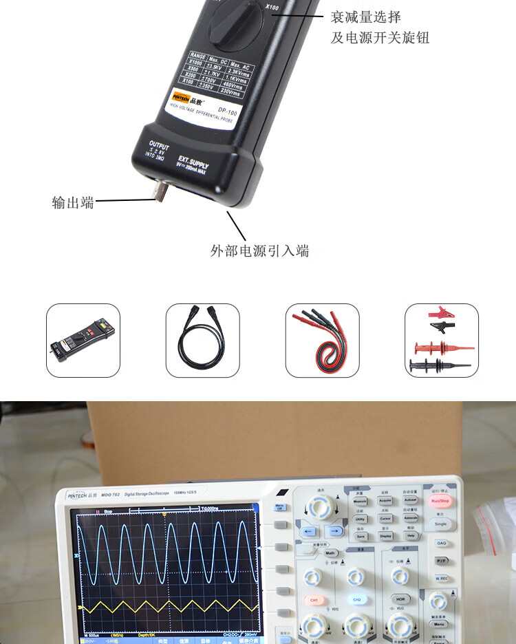 PINTECH's economical high-voltage differential probe DP-100 can match 7000Vp-p oscilloscopes of different brands