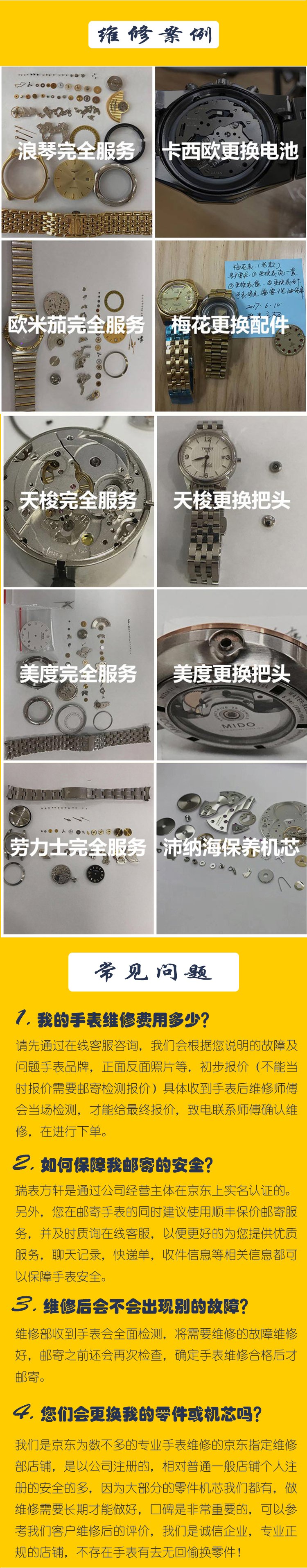 Famous watch repairer, Rossini watch mail-in repair and maintenance service, waterproof inspection, battery replacement, crown, strap, glass movement, quick repair