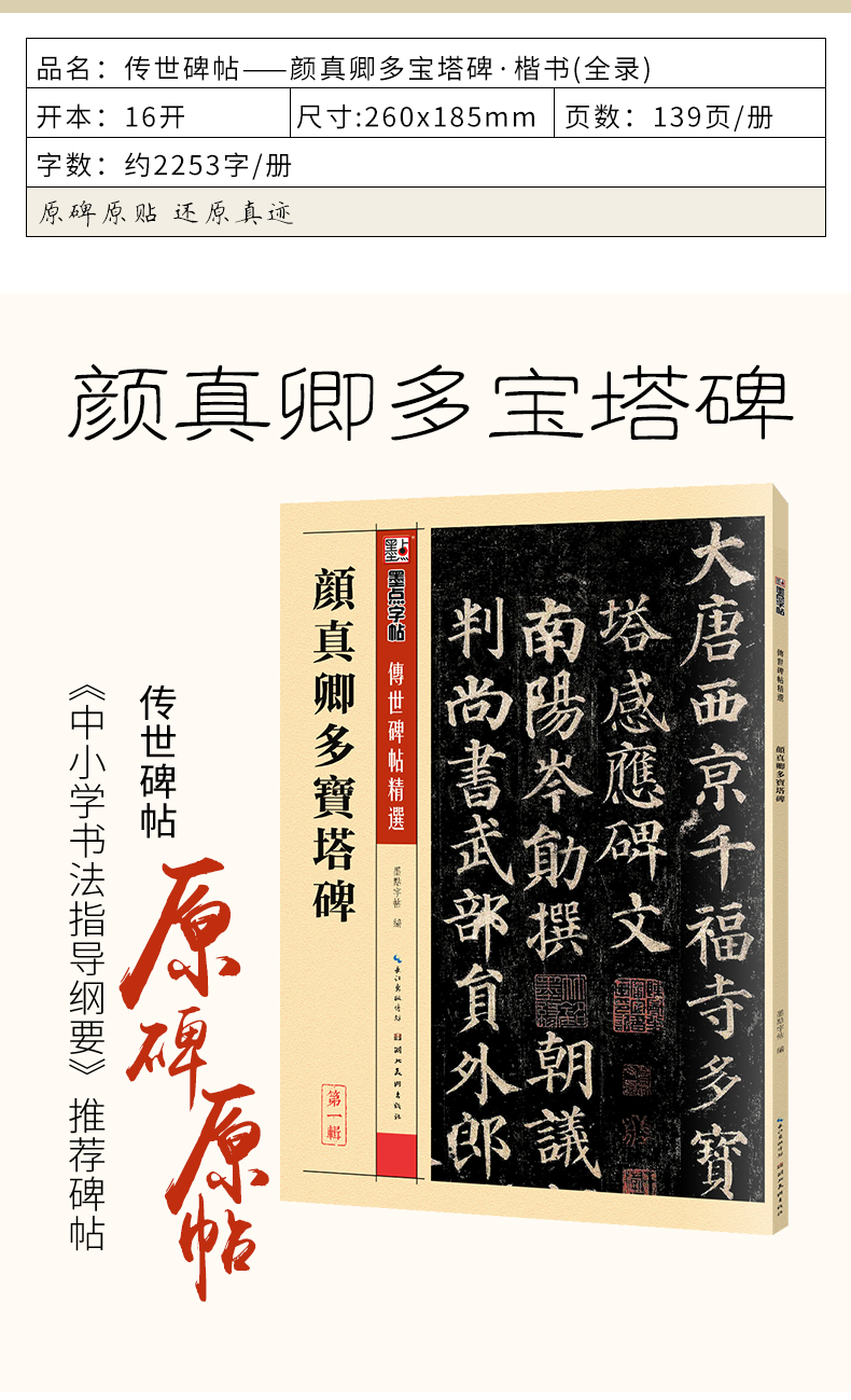 Ink dot copybook Tang Yan Zhenqing Duobao Pagoda original copy Yan style regular script brush calligraphy copybook Beginner entry-level elementary school students adult self-study entry copy copy template training class practical book brush calligraphy