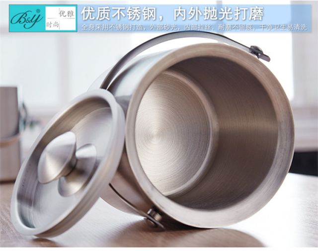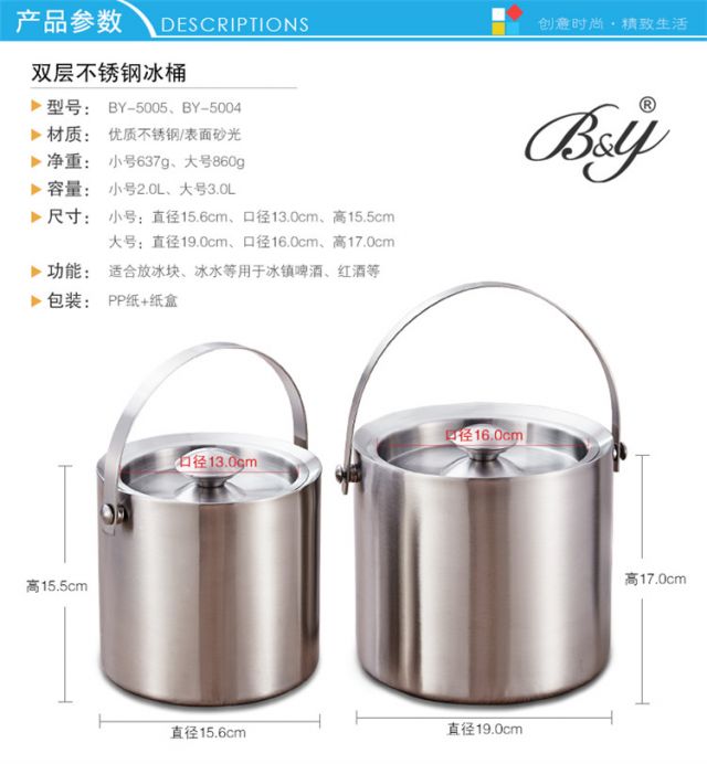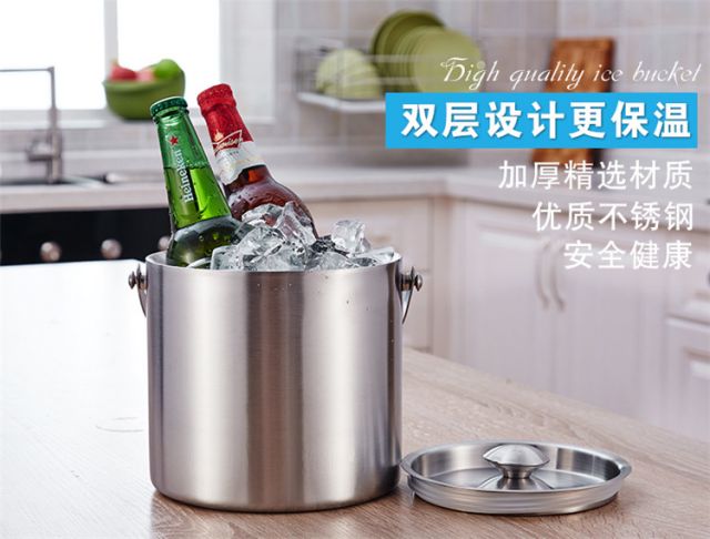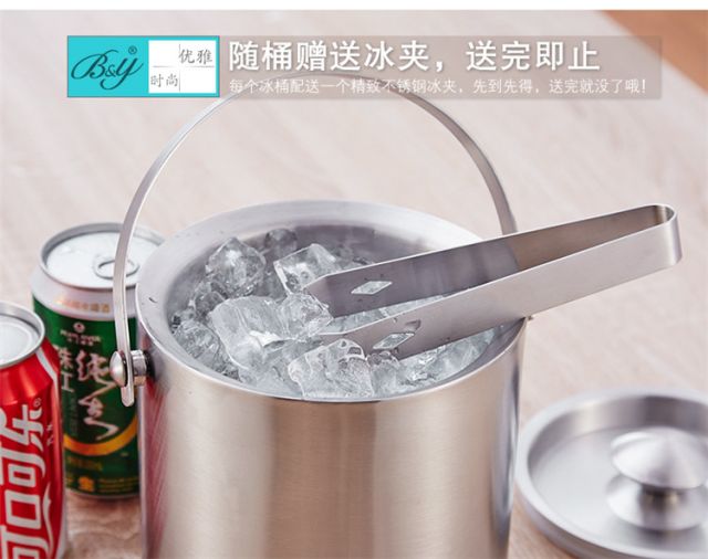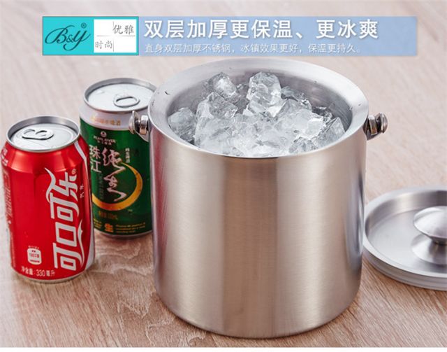 B&y double-layer stainless steel ice bucket with lid, red wine bucket, champagne bucket, spit bucket, portable handle type, large (3 liters)