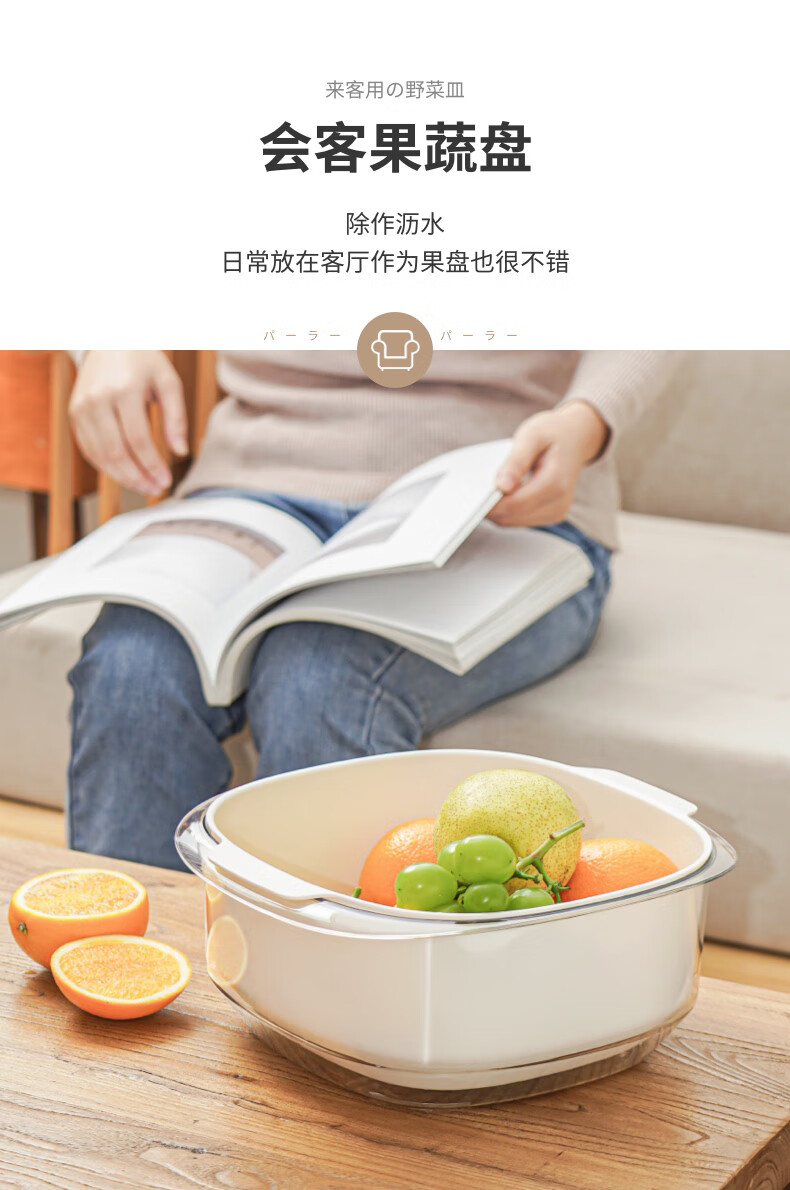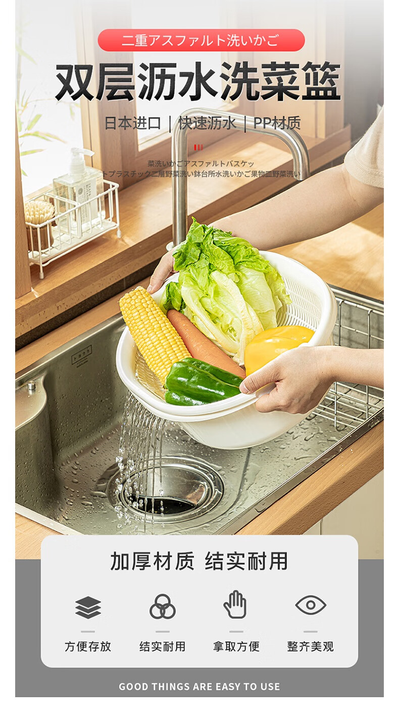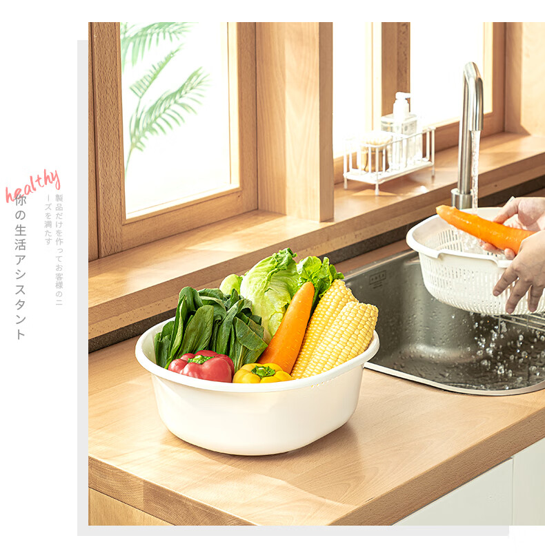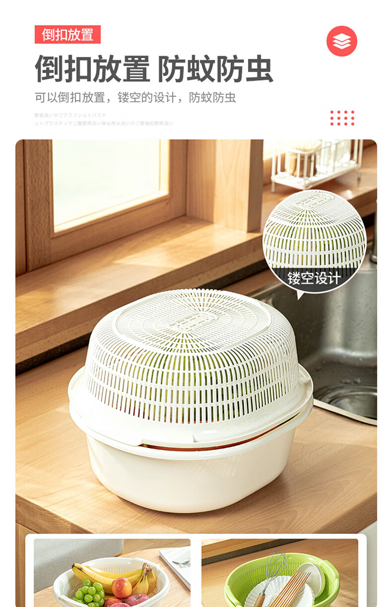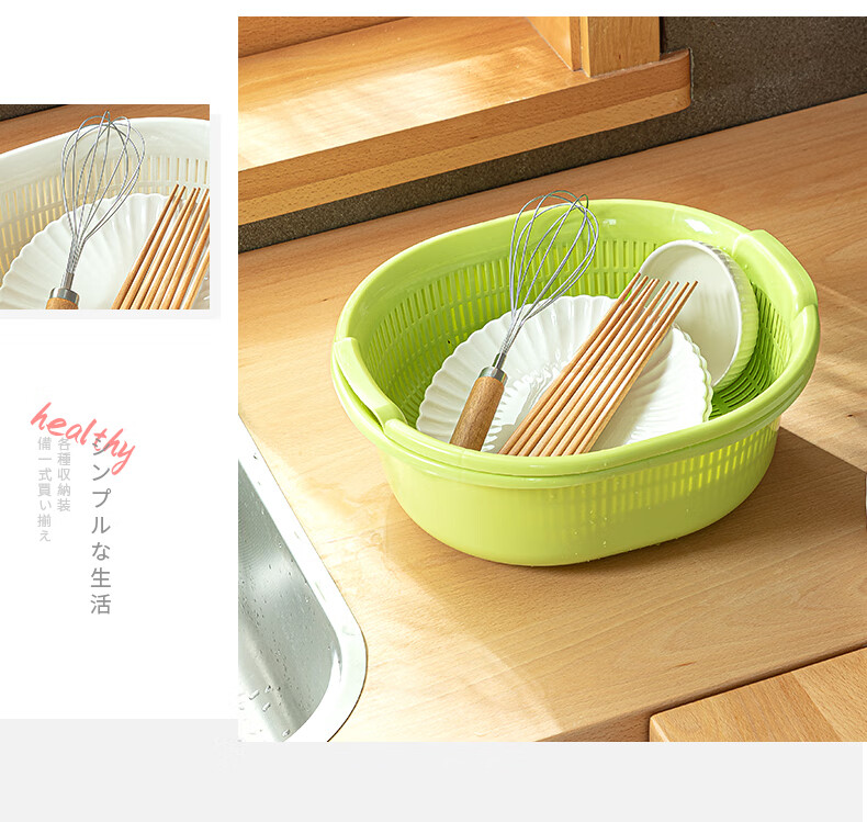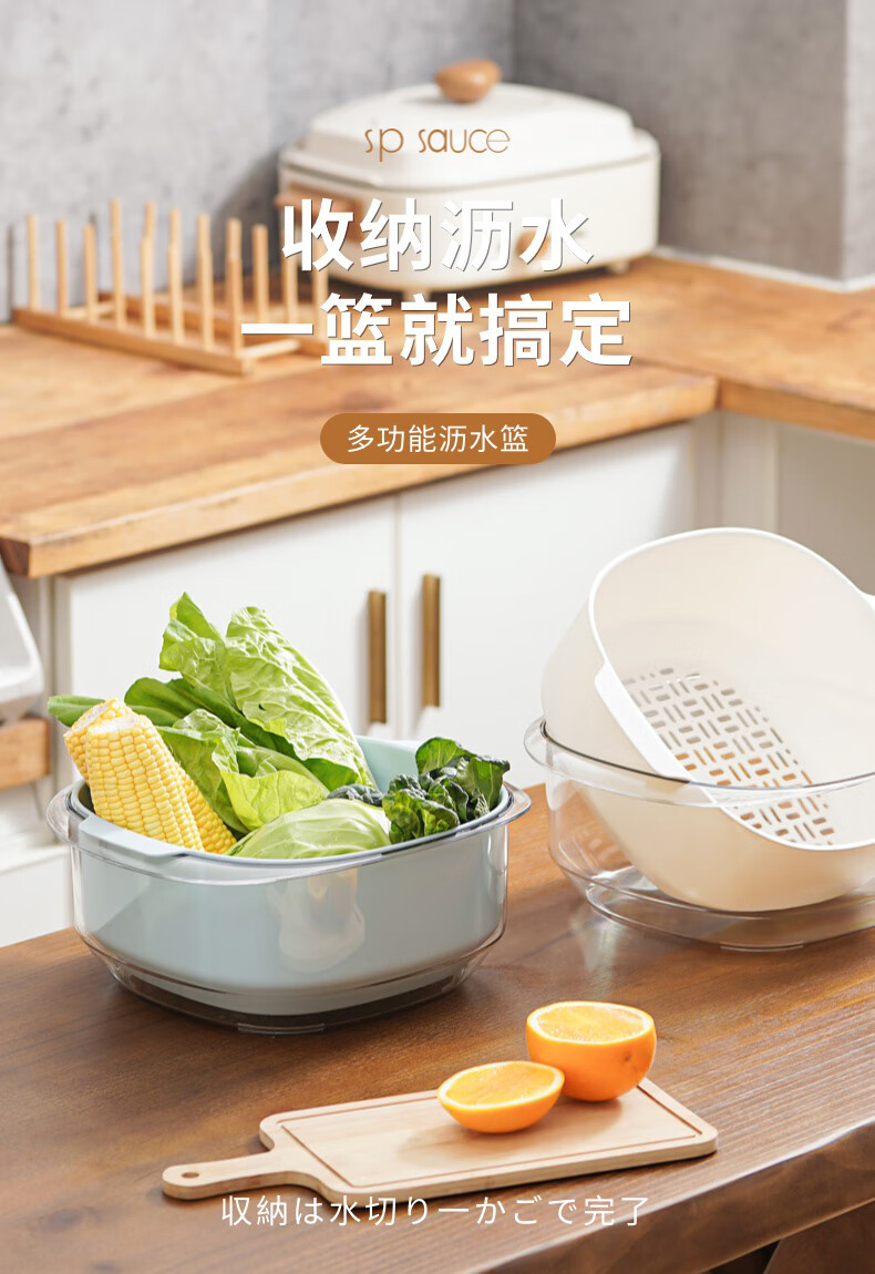 SP SAUCE Japan imported vegetable sink kitchen drain basket washing basin dish storage basket combination of 2 pieces white Japanese SANADA